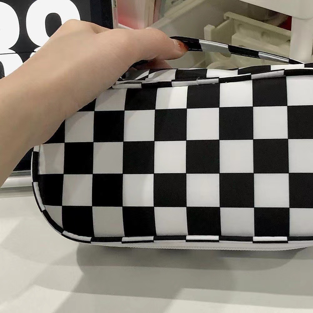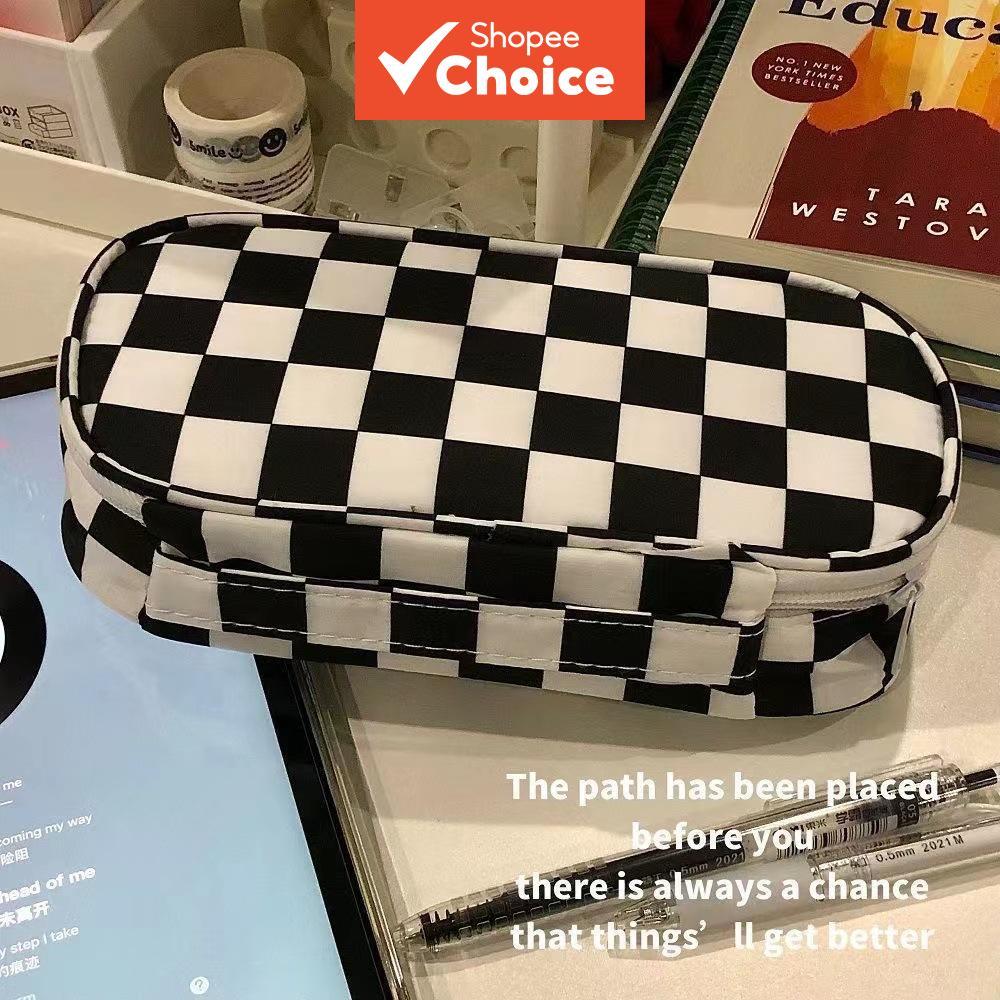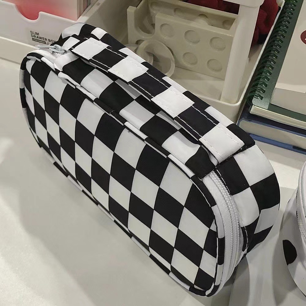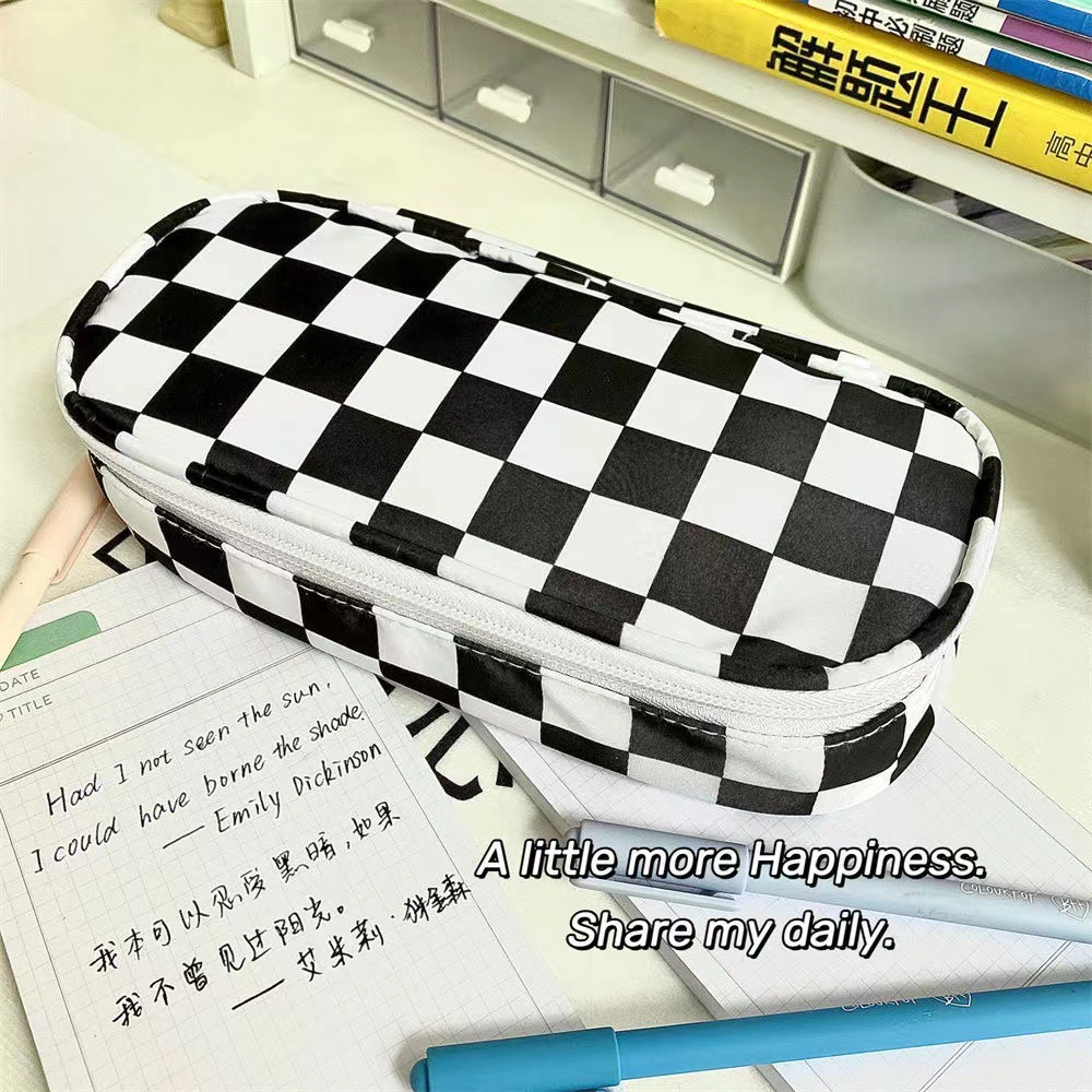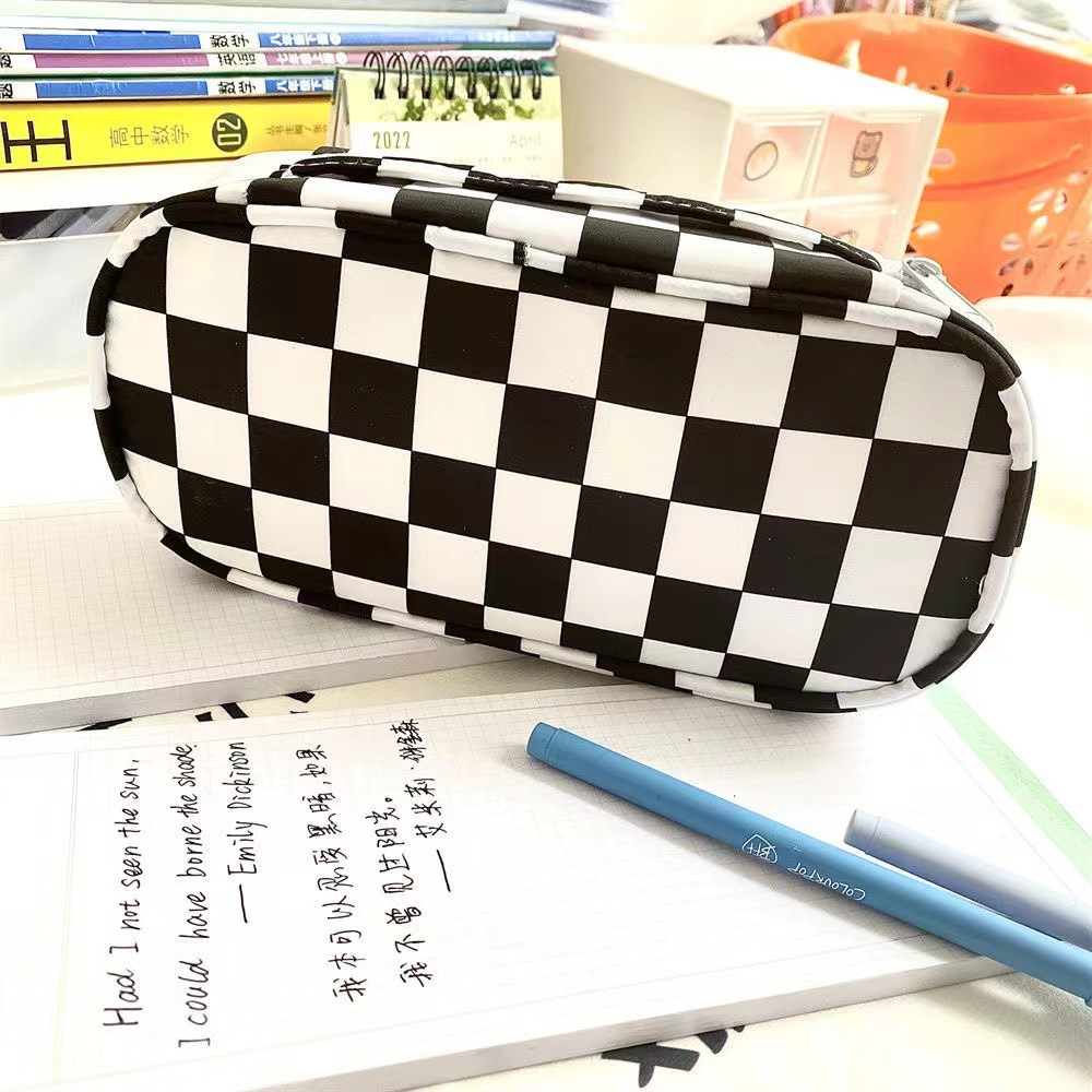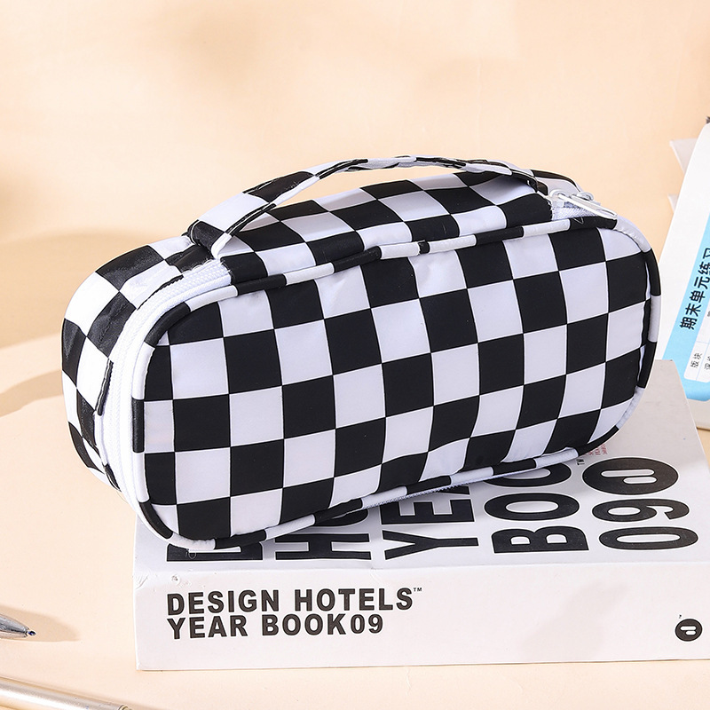 Checkerboard transparent pencil case for girls high-value stationery bag simple ins style large capacity black and white checkered pencil case
