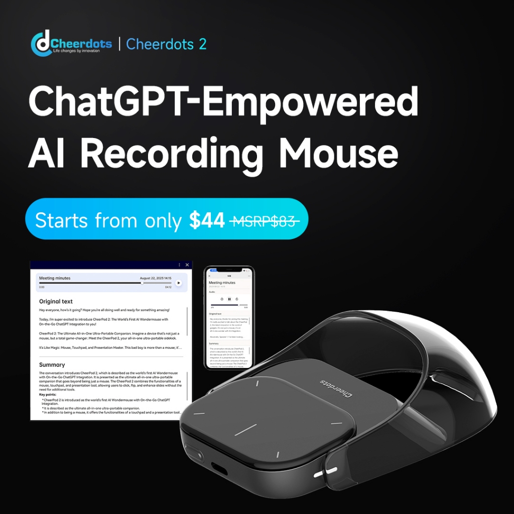 Cheerdots 2 Air Wireless Mouse AI Recording ChatGPT Enabled Mouse Portable Laser Pointer for Laptop Accessories,phone,tablet,iPad,smart TV,Macbook