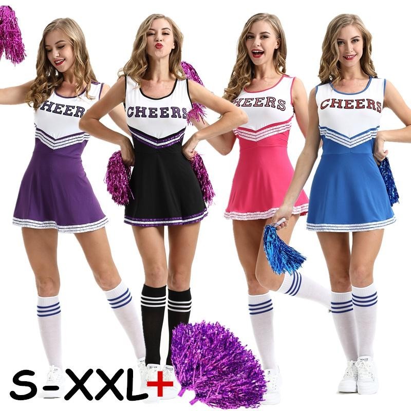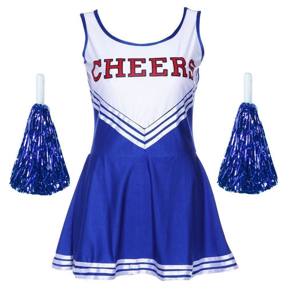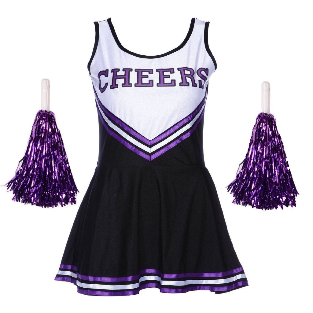 Cheerleader Fancy Dress Outfit Uniform High School Musical Costume with Pom Poms