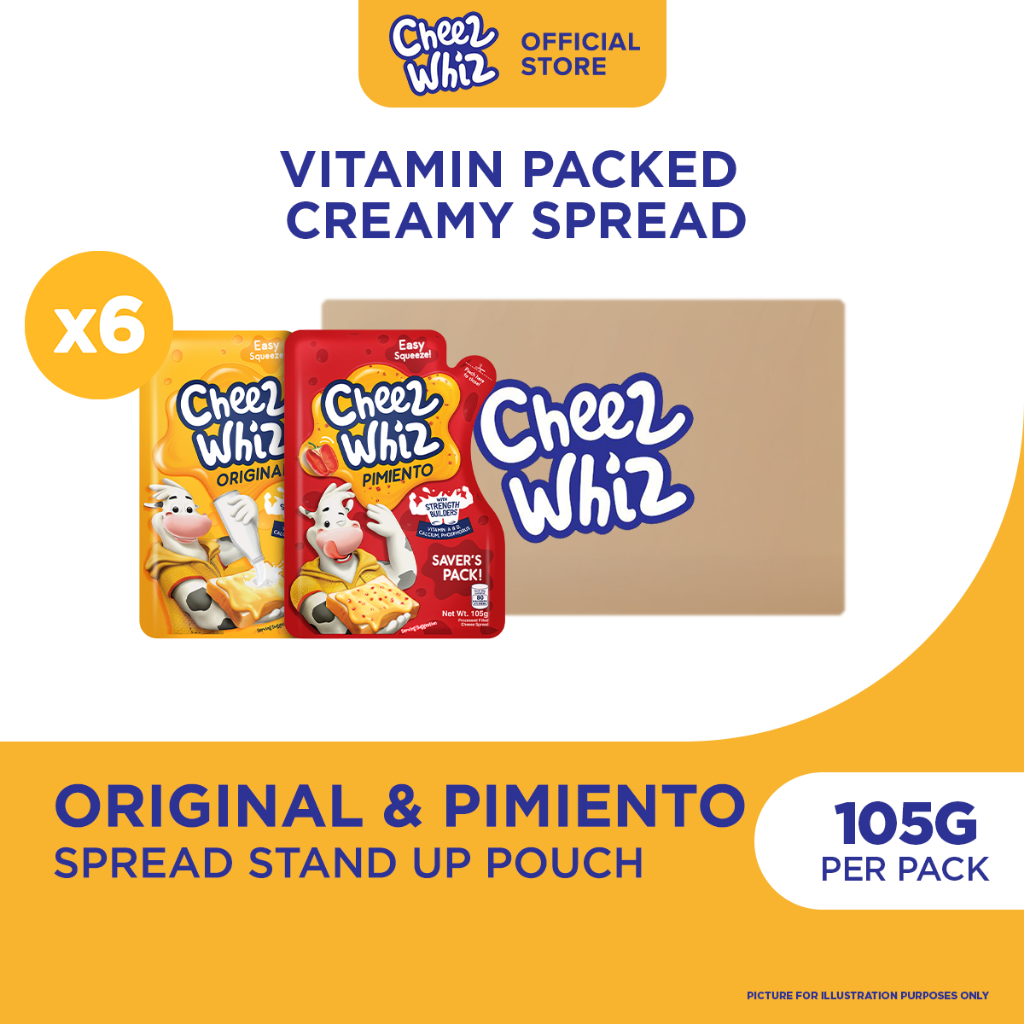 Cheez Whiz Cheese Spread Bundle - Original in Pouch 105g x 3 and Pimiento in Pouch 105g x 3