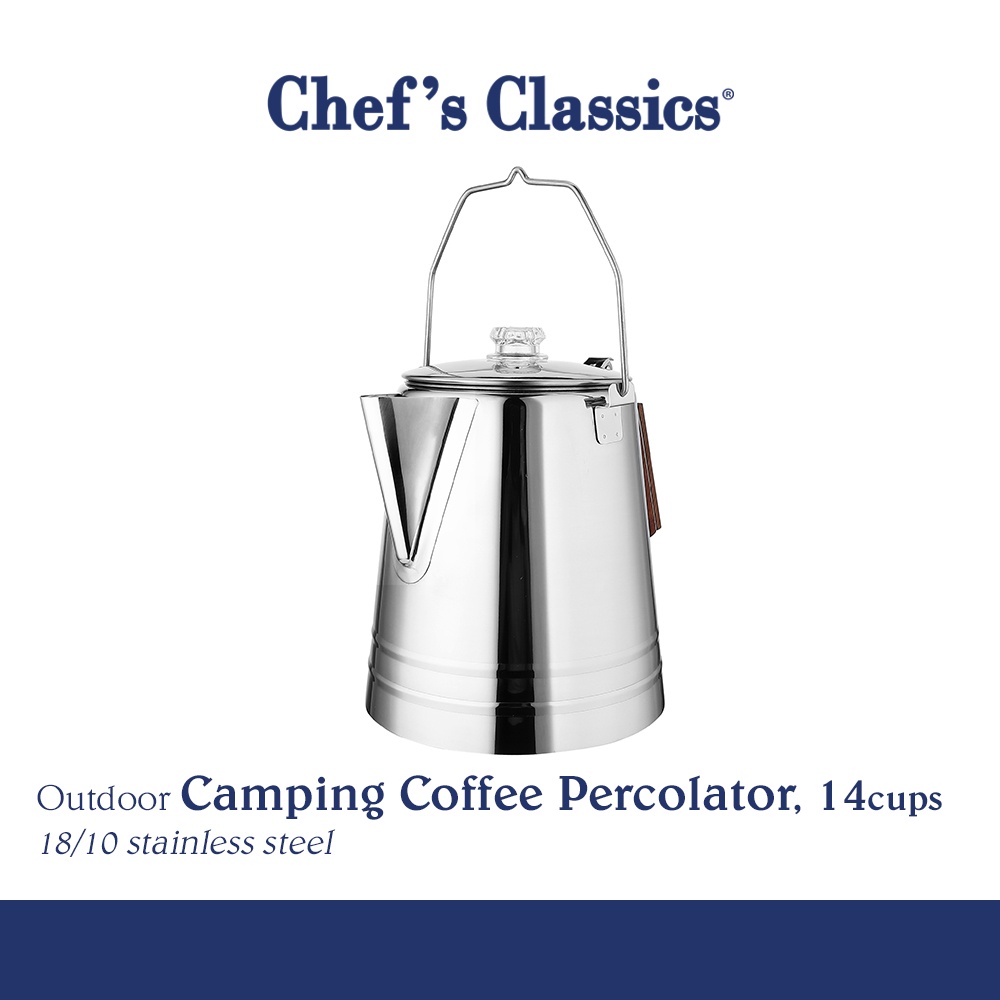 Chef's Classics Outdoor Stainless Steel Camping Coffee Percolator, 14 cups