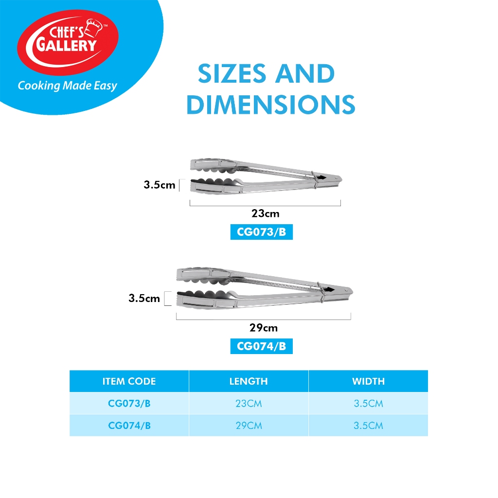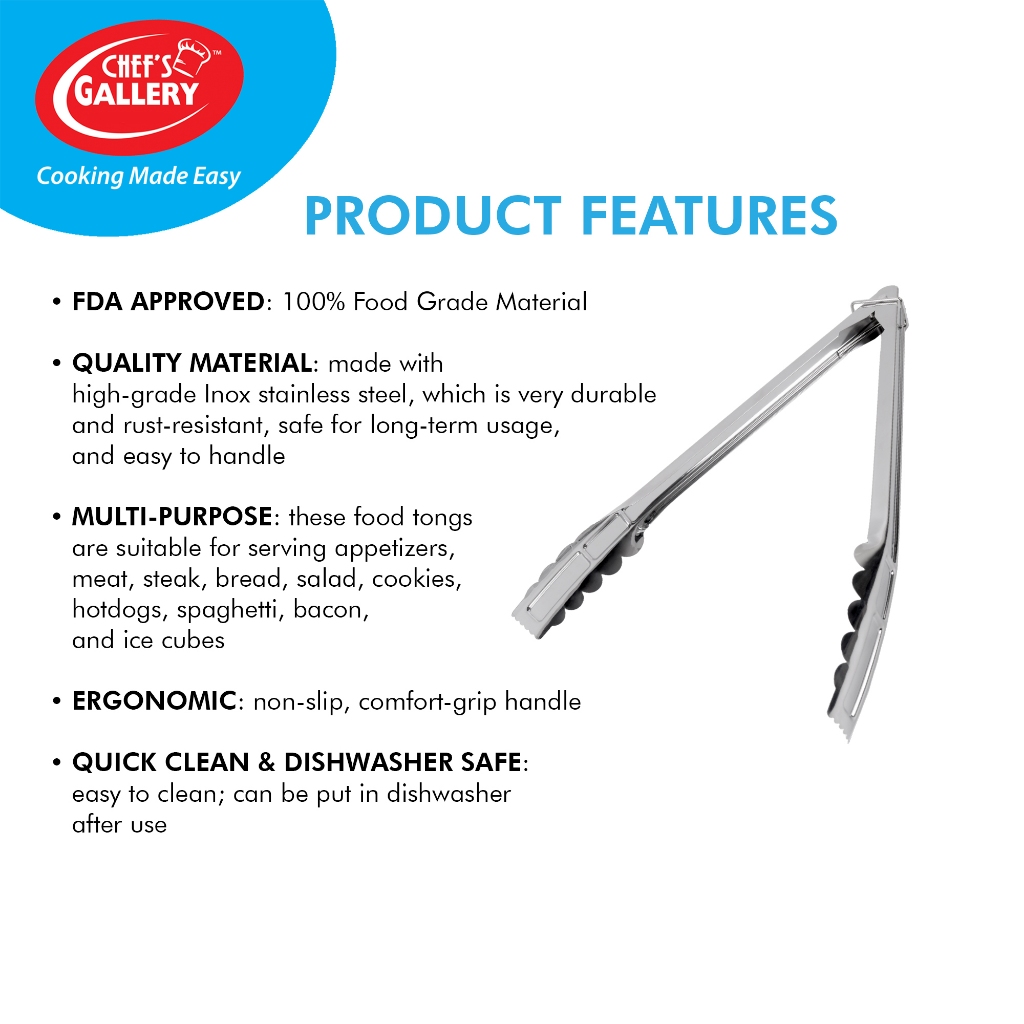 Chef's Gallery Food Tongs, Food Grade Material, Multi-Purpose Serving Tongs, FDA Approved
