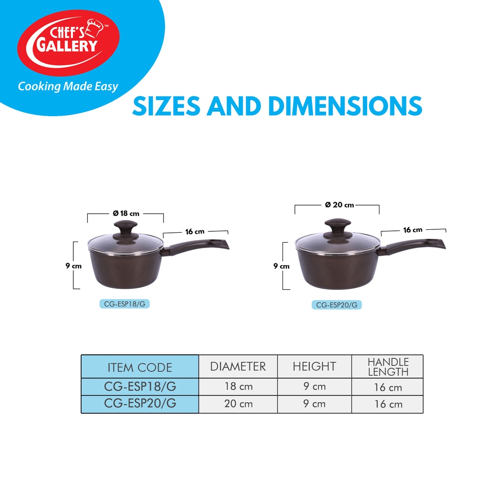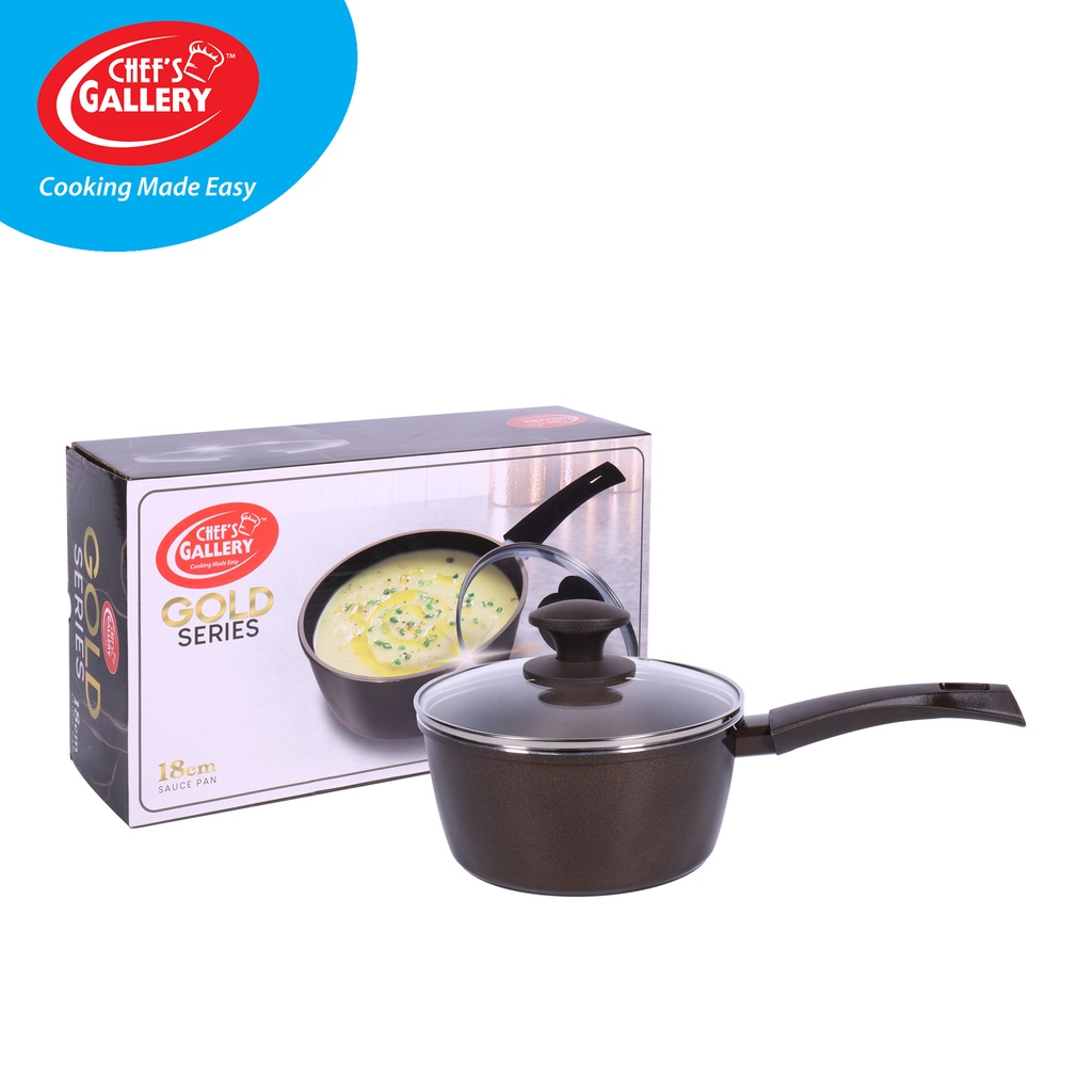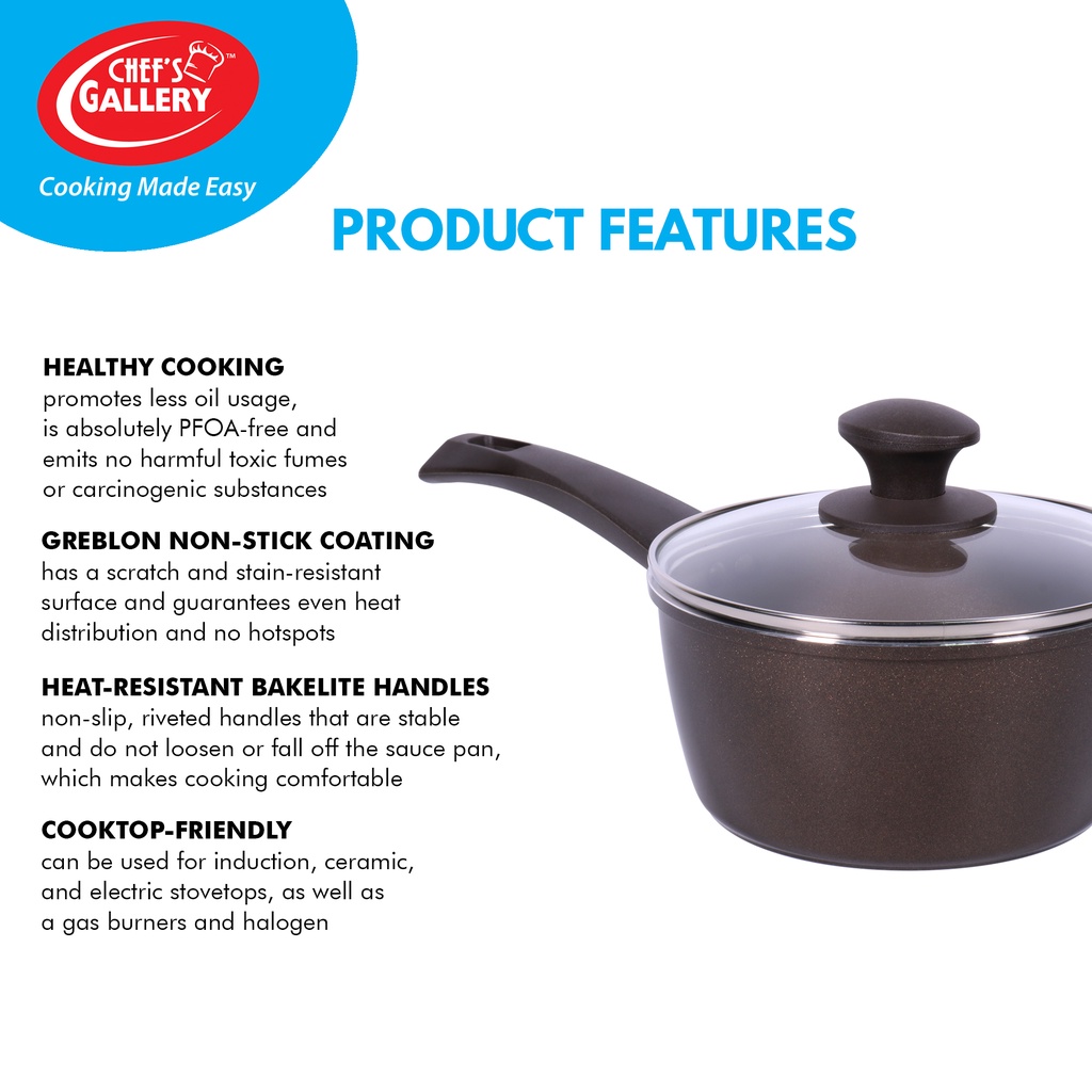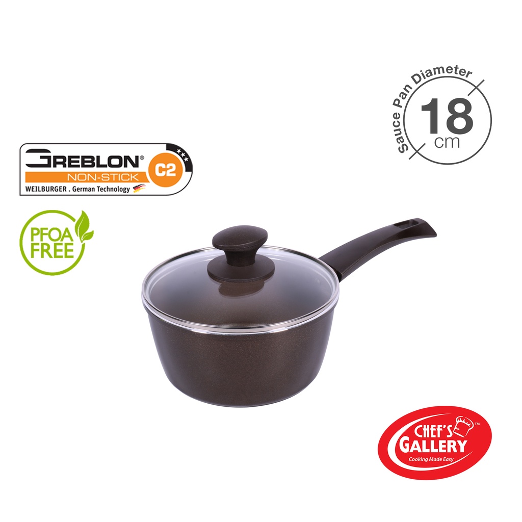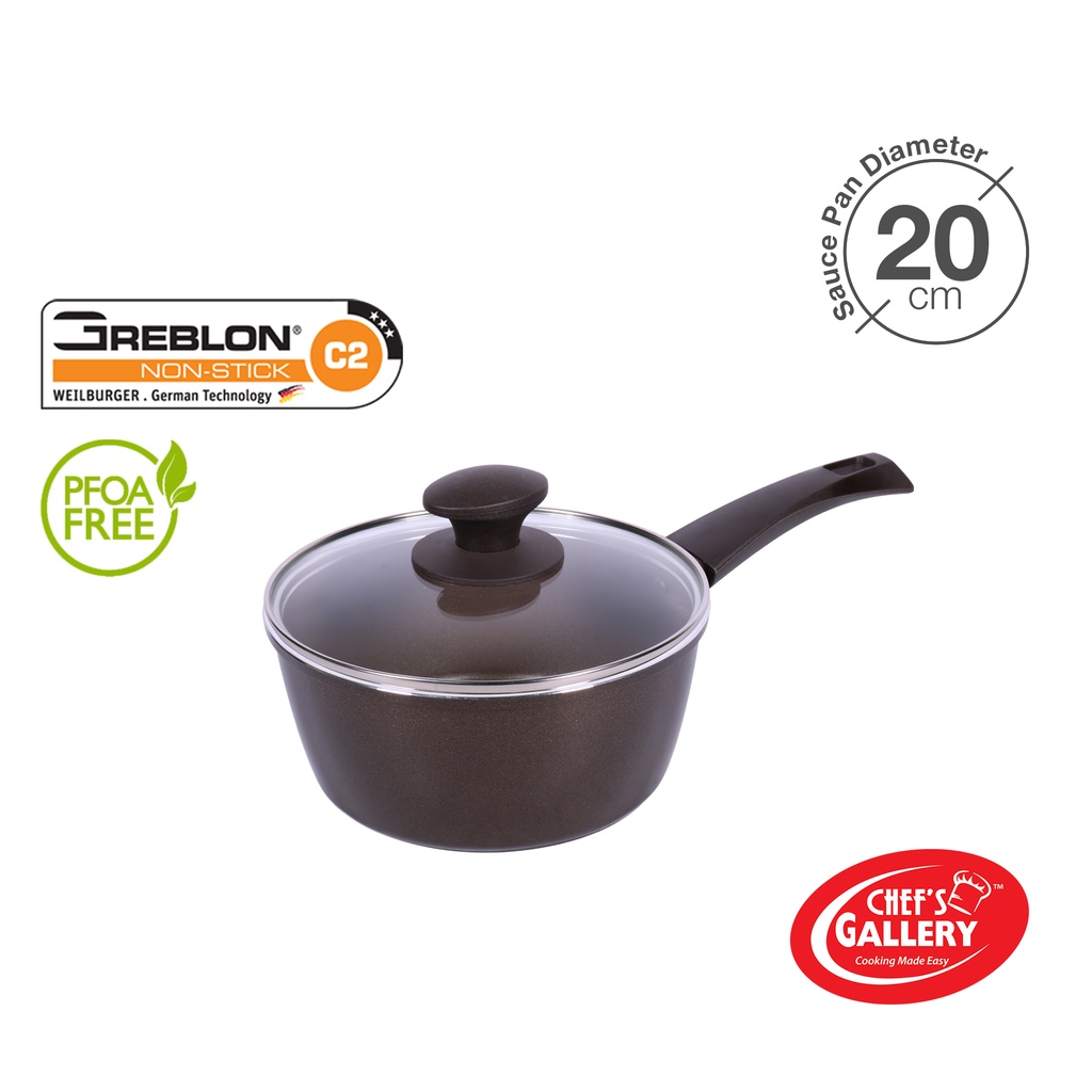 Chef's Gallery Gold Series Greblon C2 Non-Stick Sauce Pan | PFOA Free | Induction Ready
