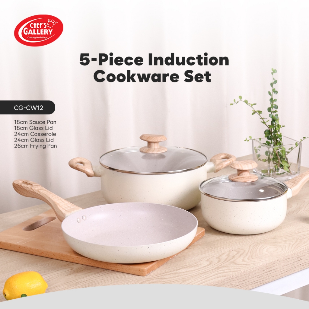 Chef's Gallery Induction Non-Stick Cookware Set 3-Piece or 5-Piece Vienne PFOA Free Bakelite Handle