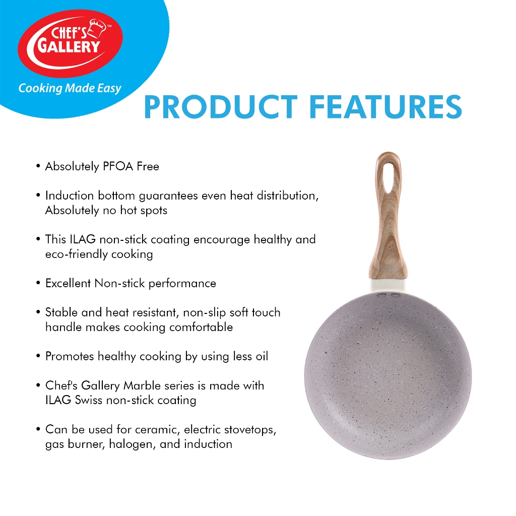 Chef's Gallery Marble Frying Pan 26cm | ILAG Non-Stick | PFOA Free | Induction Ready