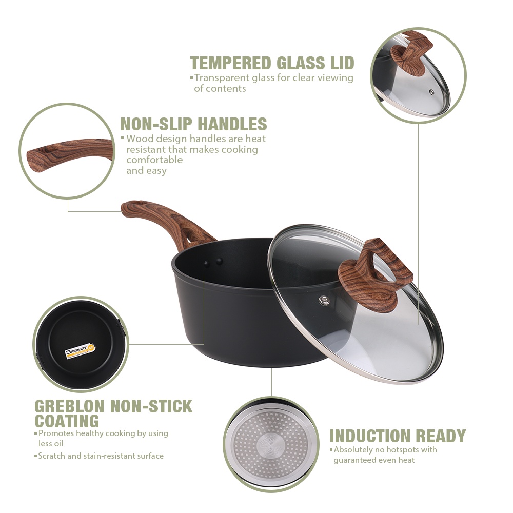 Chef's Gallery Nature Gourmet Sauce Pan 18cm w/ Free Felt Pad | Induction Ready | Non-Stick