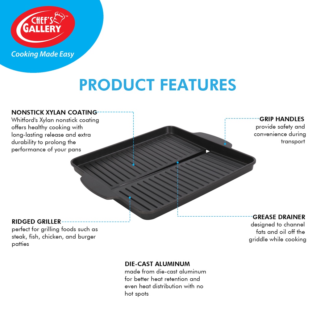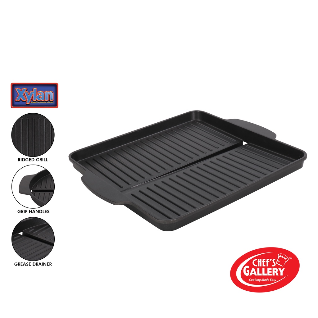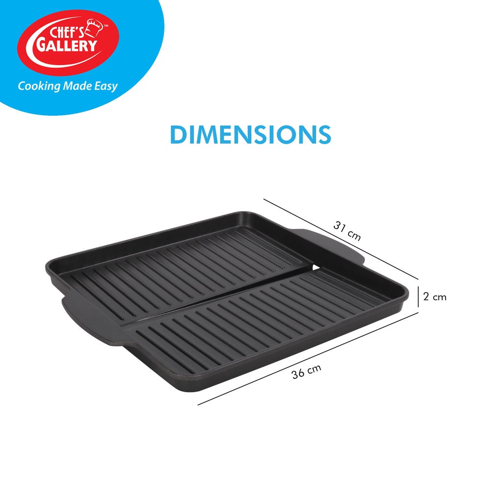 Chef's Gallery Square Griddle Pan | Non-stick Grill Plate for Yakiniku, Samgyeopsal BBQ | CG-GR004