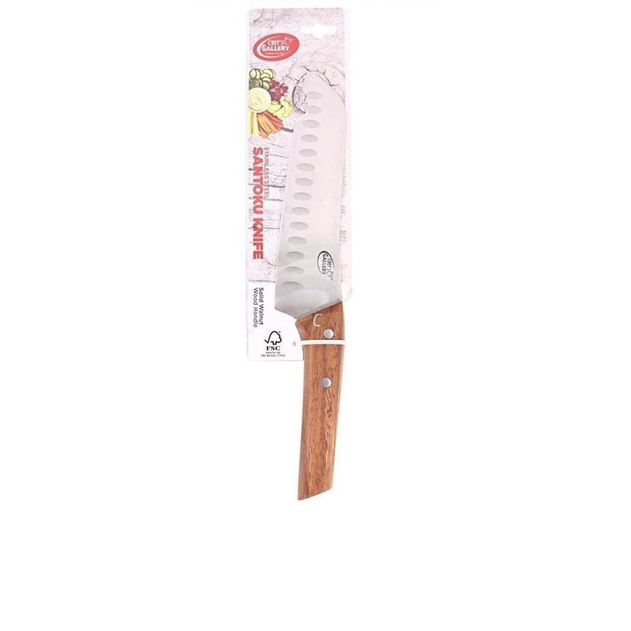 Chef's Gallery Stainless Santoku Knife 7" with Solid Walnut Wooden Handle