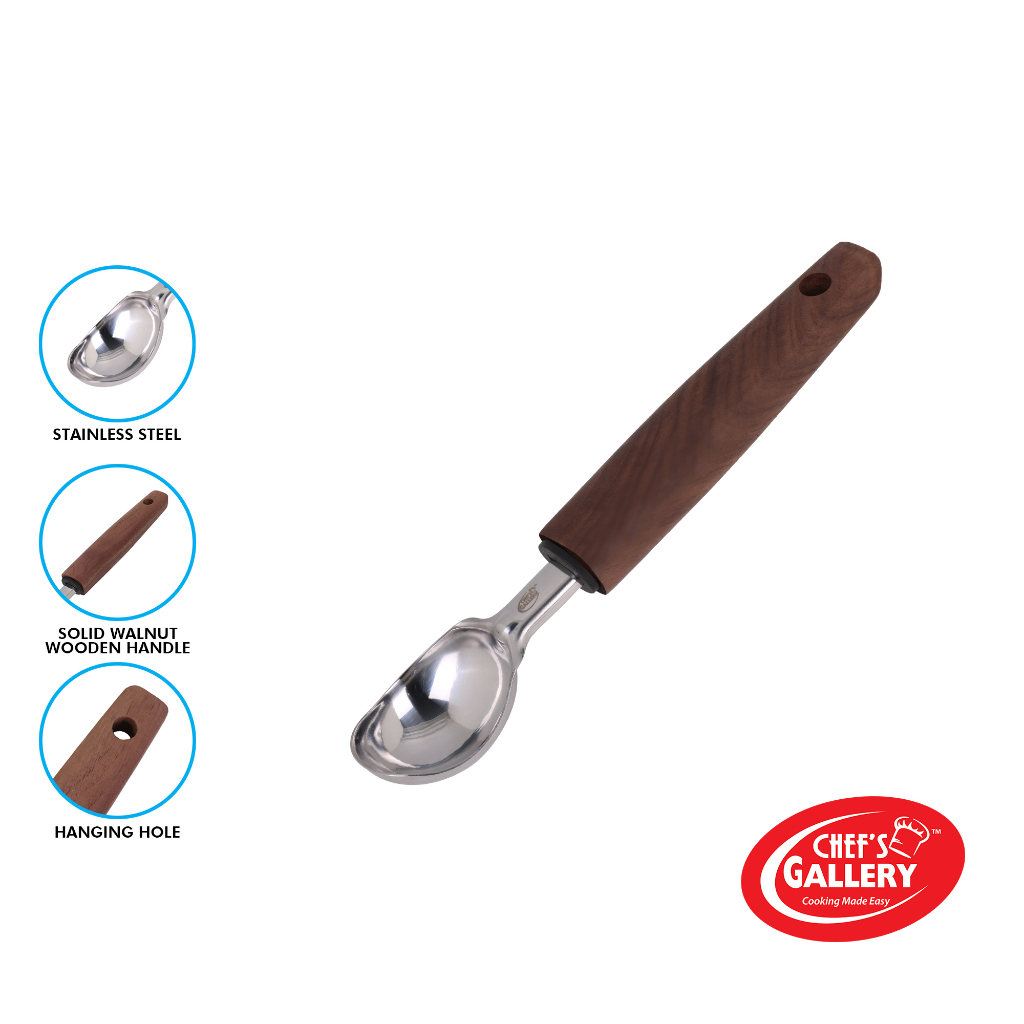 Chef's Gallery Stainless Steel Kitchen Utensils with Solid Walnut Wooden Handle | Durable & Sharp