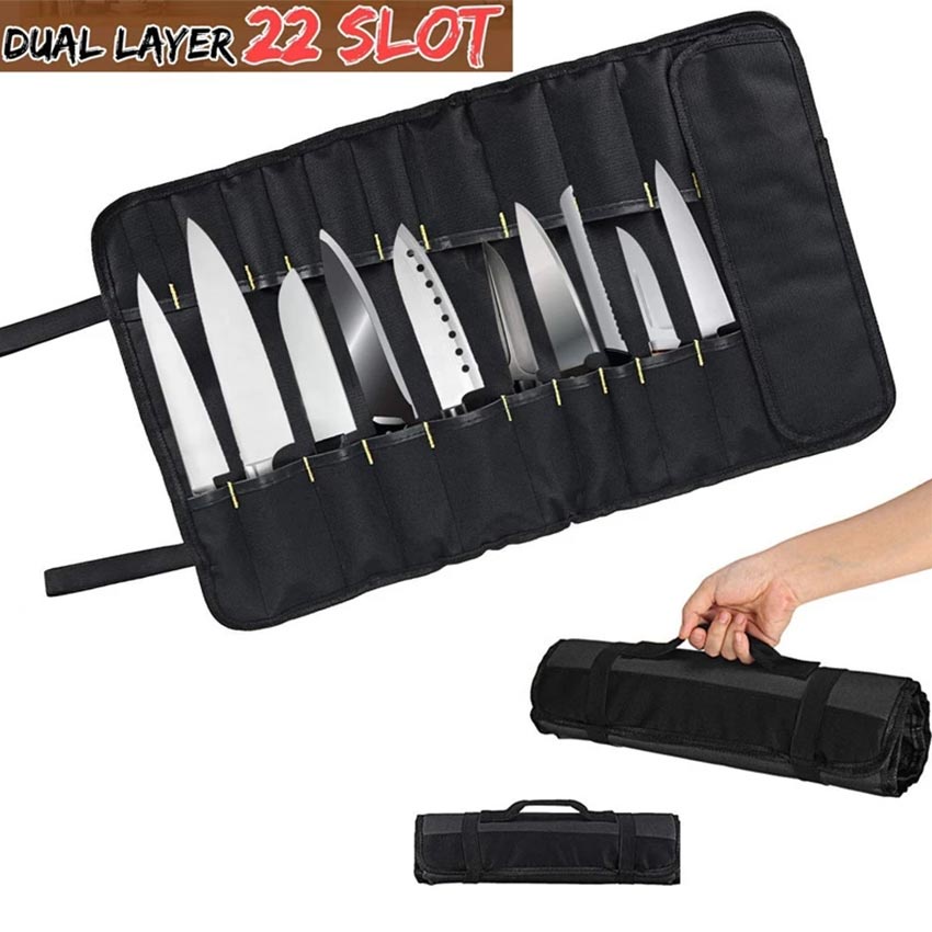 Chef Knife Bag Roll Bag Carry Case Bag Kitchen Cooking Portable Durable Storage 22 Pockets