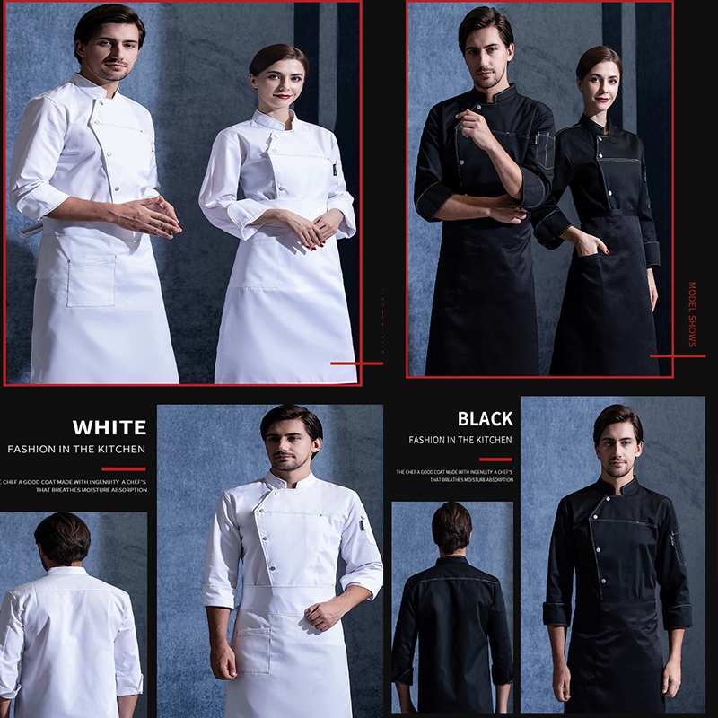Chefs Uniform Unisex Cook Chef Jacket Catering Uniform White Long Chef Top Cotton Waiter Uniform