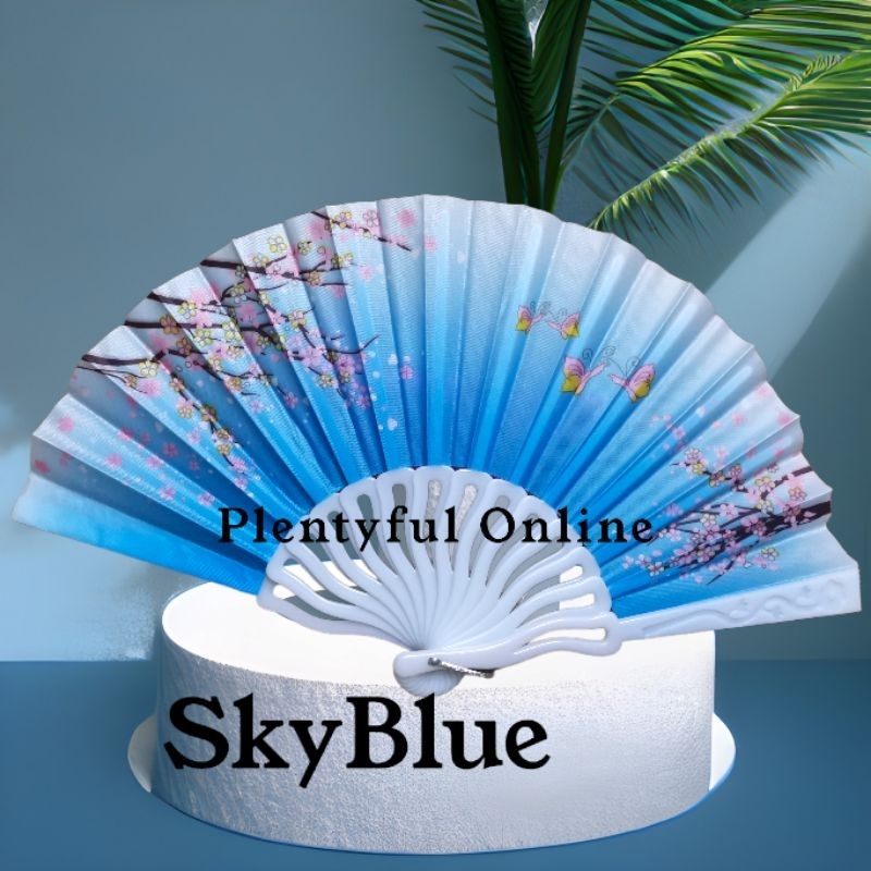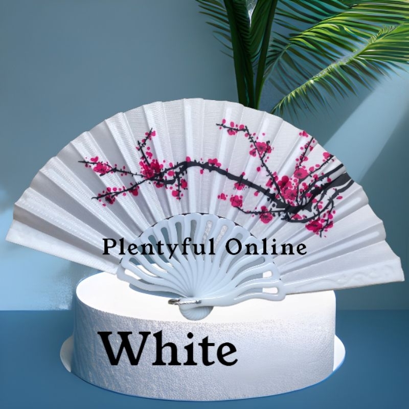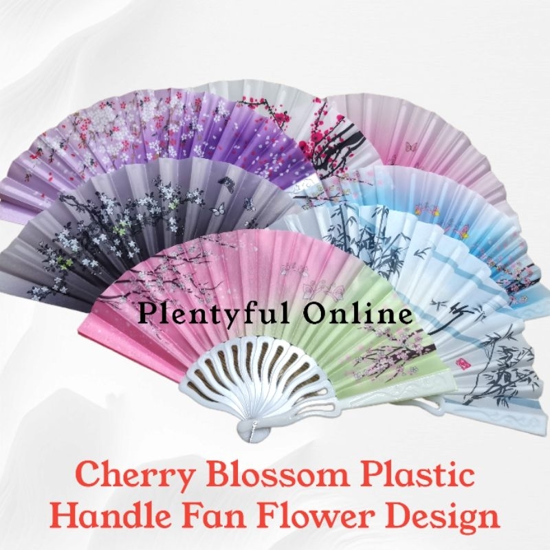 Cherry Blossom Fan Plastic Handle Flower Design Abaniko o Pamaypay
