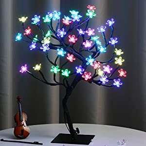 Cherry Blossom Tree Light with Remote Control 16 Color-Changing LED Artificial Flower Bonsai Tree Ta