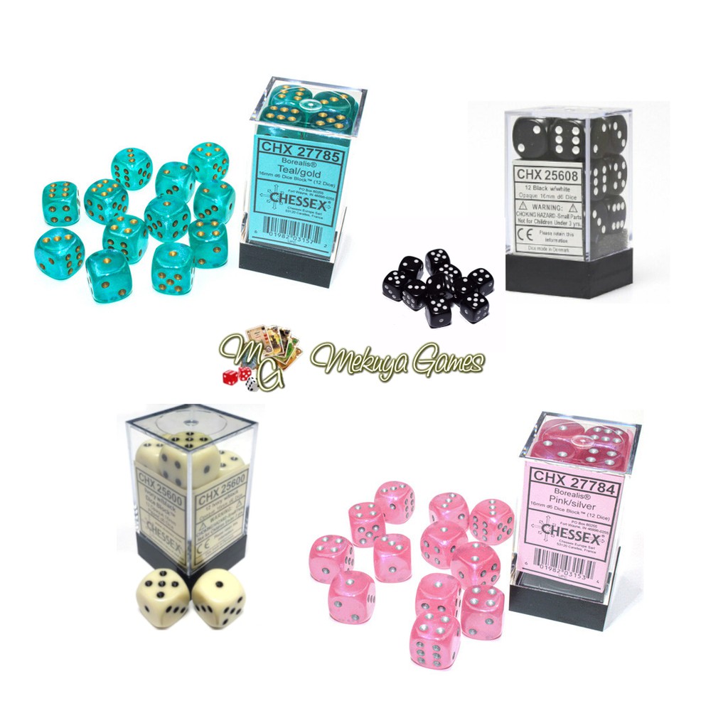 Chessex 16mm d6 Dice Block contains 12 Dice Luminary Glows in the Dark Translucent Clear Transparent