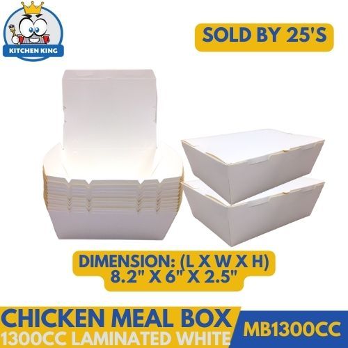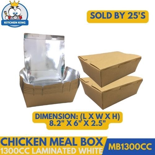 Chicken Meal Box 1300cc/ Lunch box (White / Brown) Disposable Paper box Sold By 25's