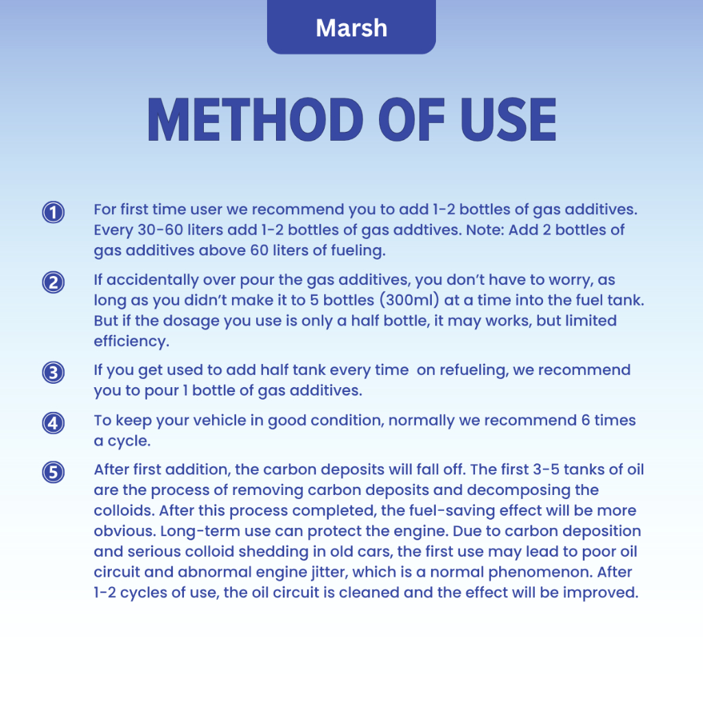 Marsh Gas Treatment Carbon Cleaner Fuel Additives Remove Deposit Gasoline Treatment Boost Power 75ml