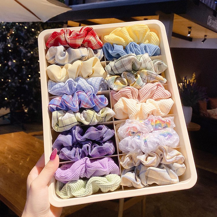 Chiffon Plaid Hair Tie Set Girls Ponytail Elastic Scrunchies Accessories