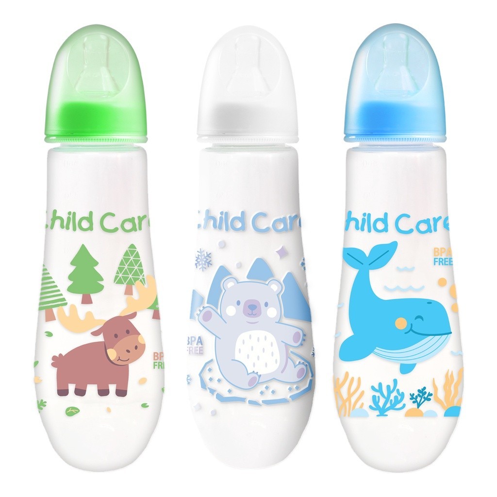 Child Care 12oz BPA FREE Printed Baby Round Plastic Feeding Bottle for Baby Boy and Girl Set of 3