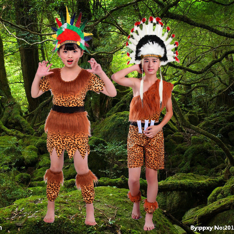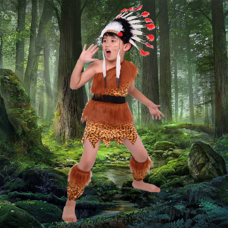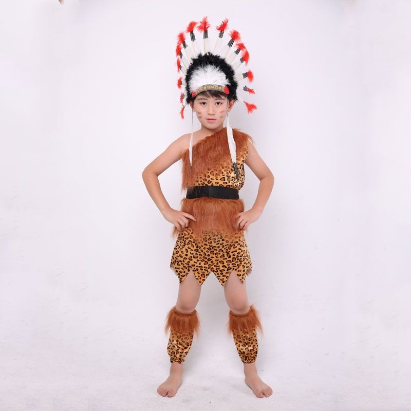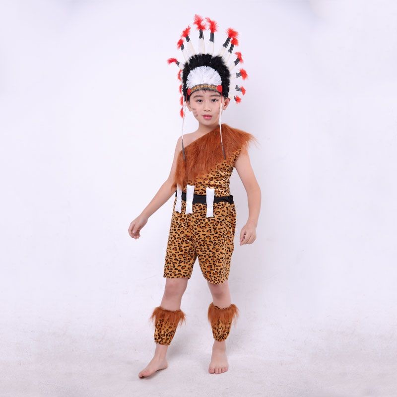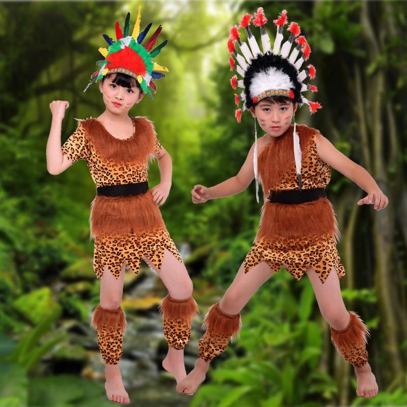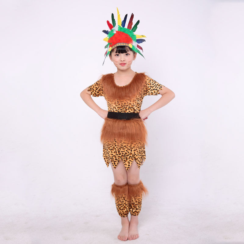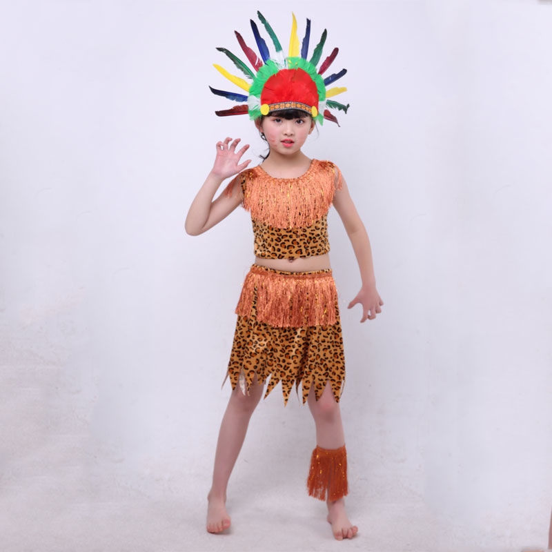 Children's African drum performance costumes, children's savage costumes, primitive tribal chief costumes, Indian costumes
