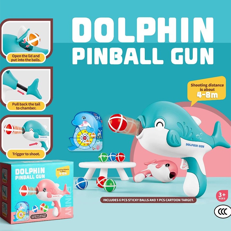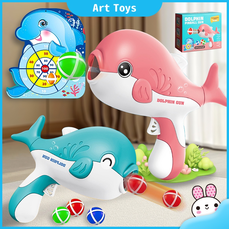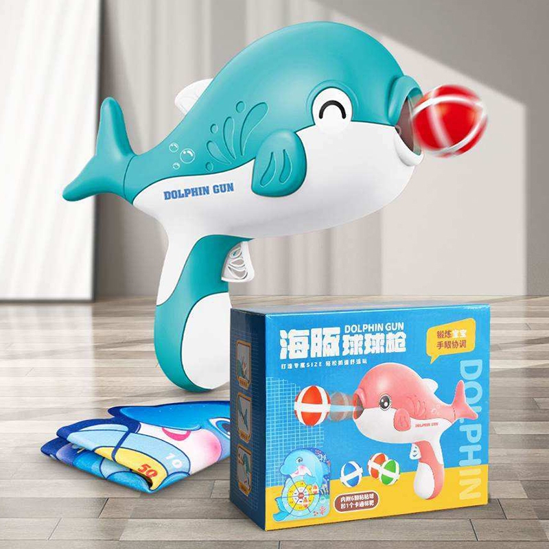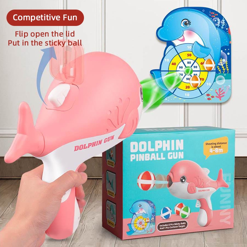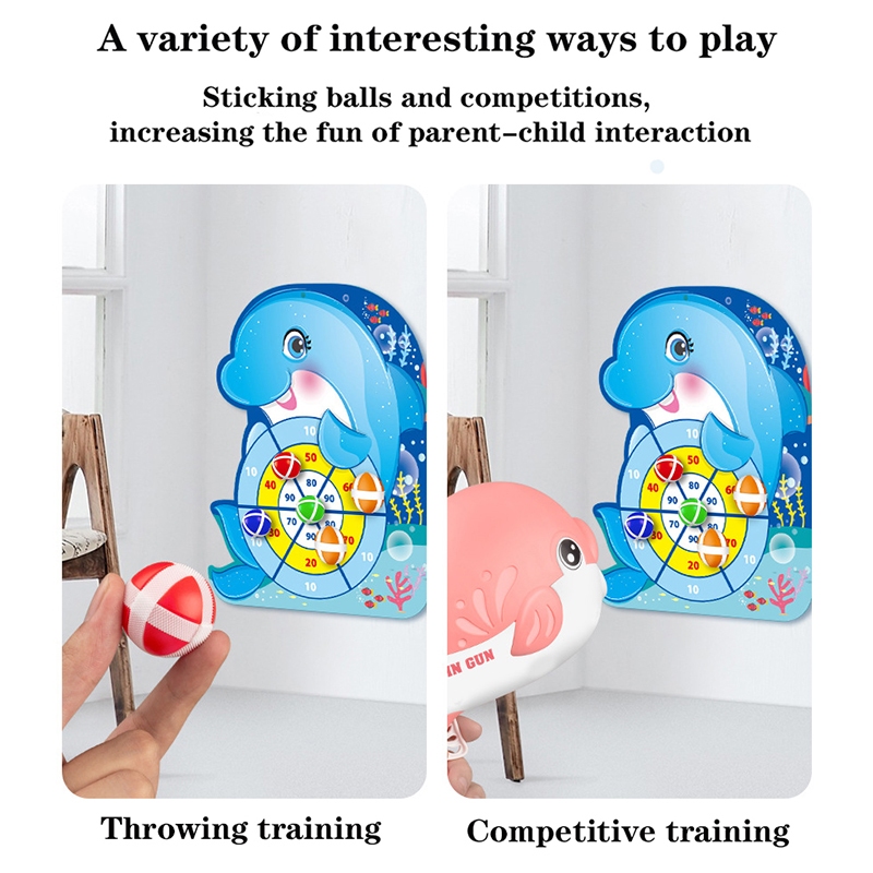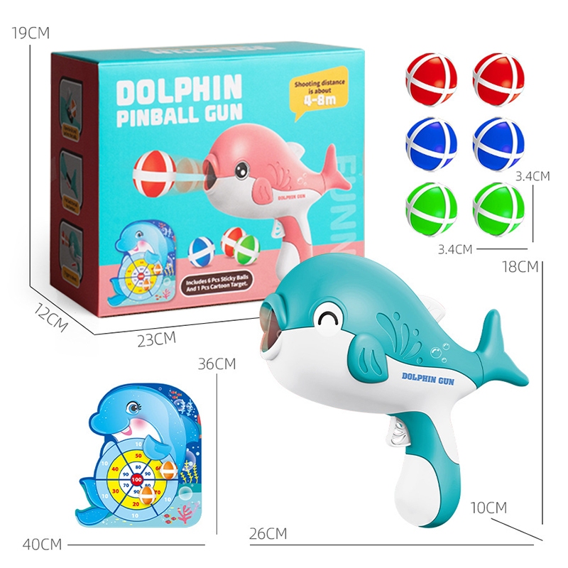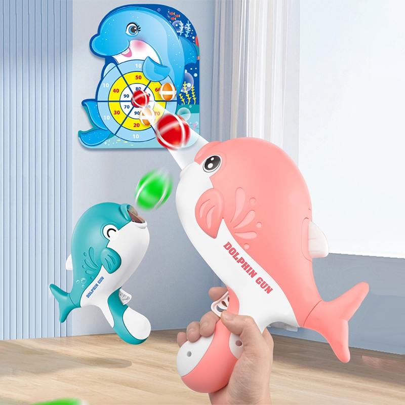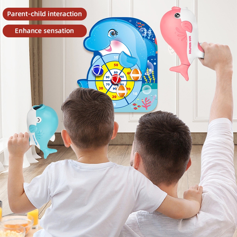 Children's Dolphin Sticky Ball Gun Toy Throwing Darts Target Shooting Toys Kids Indoor Interactive