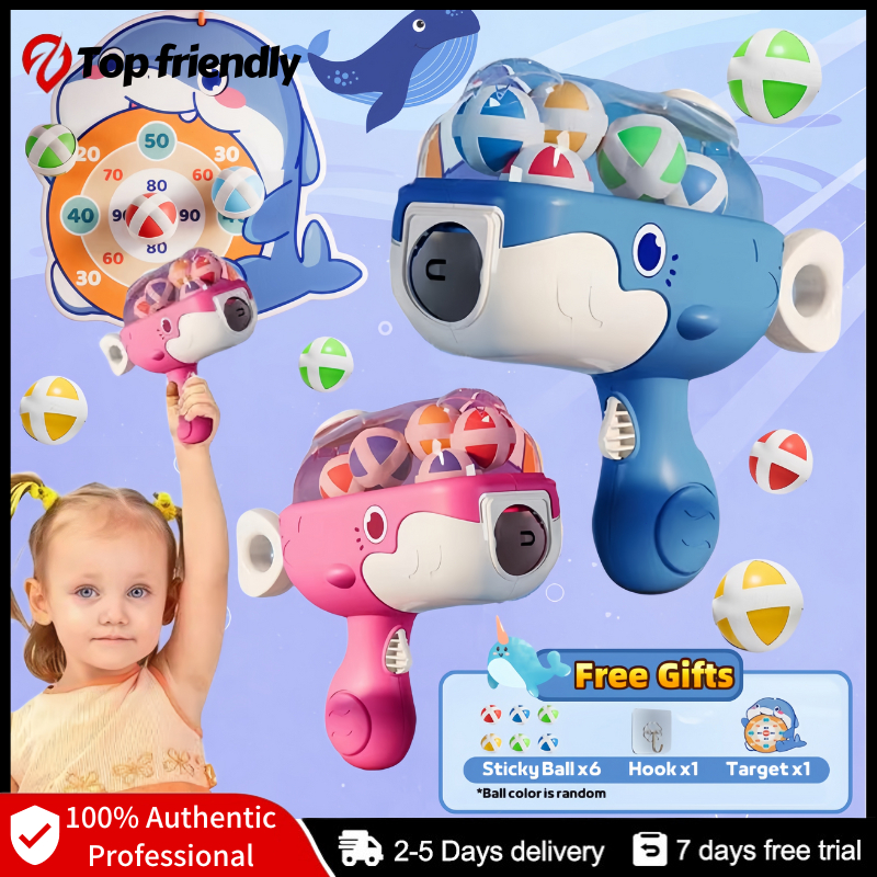 Children's Catapult Sticky Ball Indoor Dart Board Whale Ball Gun Throwing Paste Launch Toy Gun Gifts
