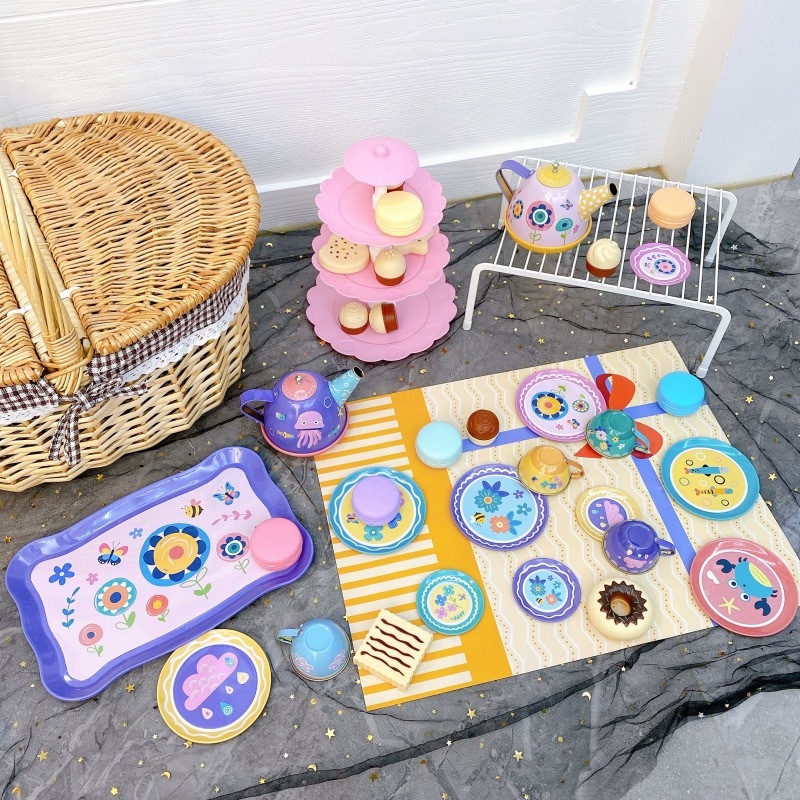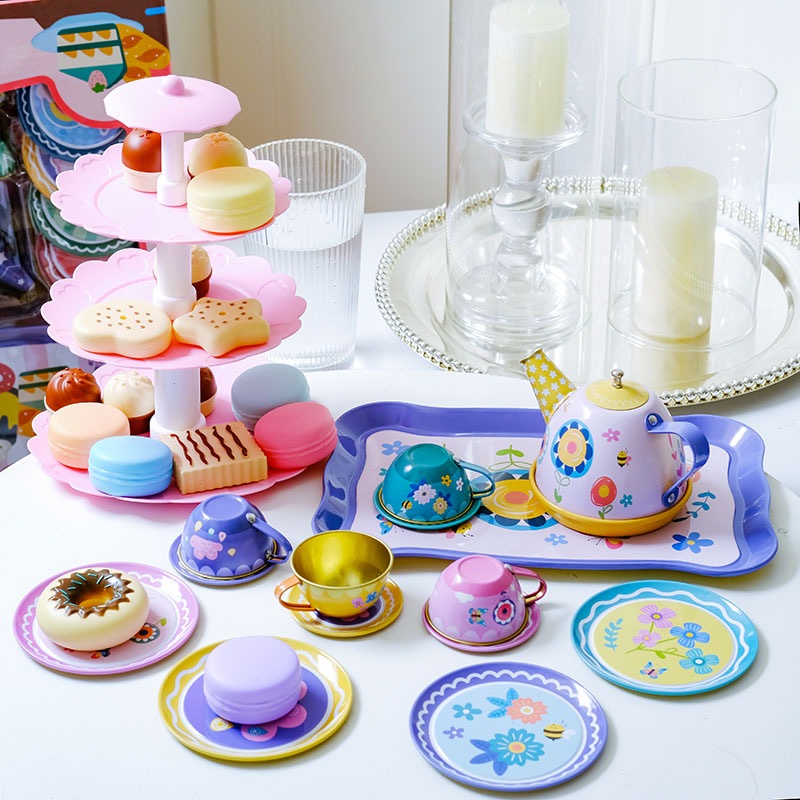 Children's Kitchen Toys Simulation Teapot Tea Cup Dessert Set Boys and Girls' Afternoon Tea Games Party Toys Suitable as Gift Toys