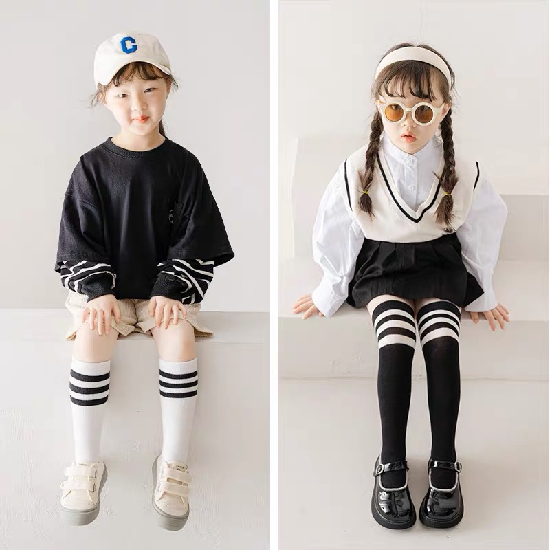 Children's Knee High/Knee High Socks Preppy Cotton Striped Socks Boys Girls Soccer Socks