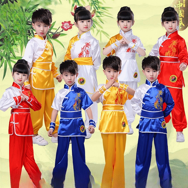 Children's Martial Arts Clothes Boys Girls Embroidered Practice Clothes Long-Sleeved Short-Sleeved Children Chinese Kung Fu Performance united nation costume girls for kids