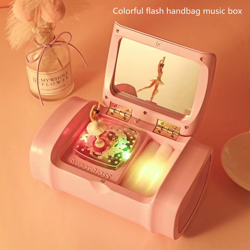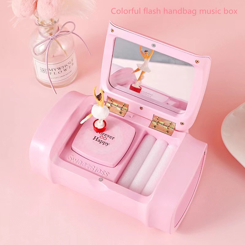 Children's Music Box Hello KT Colorful Flash Handbag Music Box Creative Rotating Dancing Little Girl Jewelry Box Children's Birthday Gift