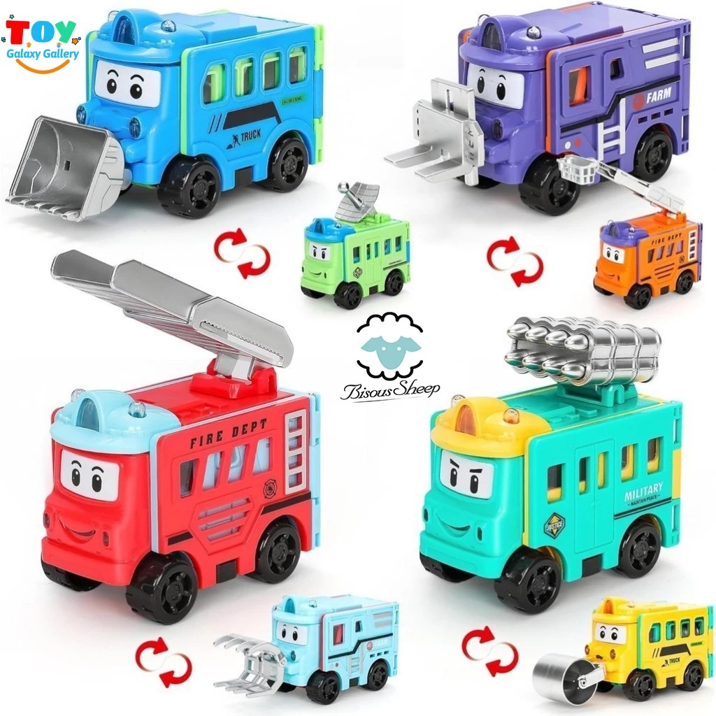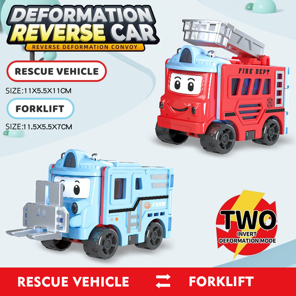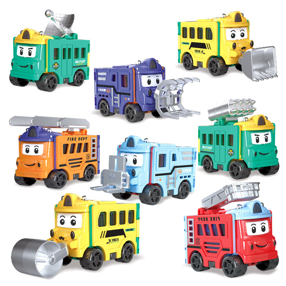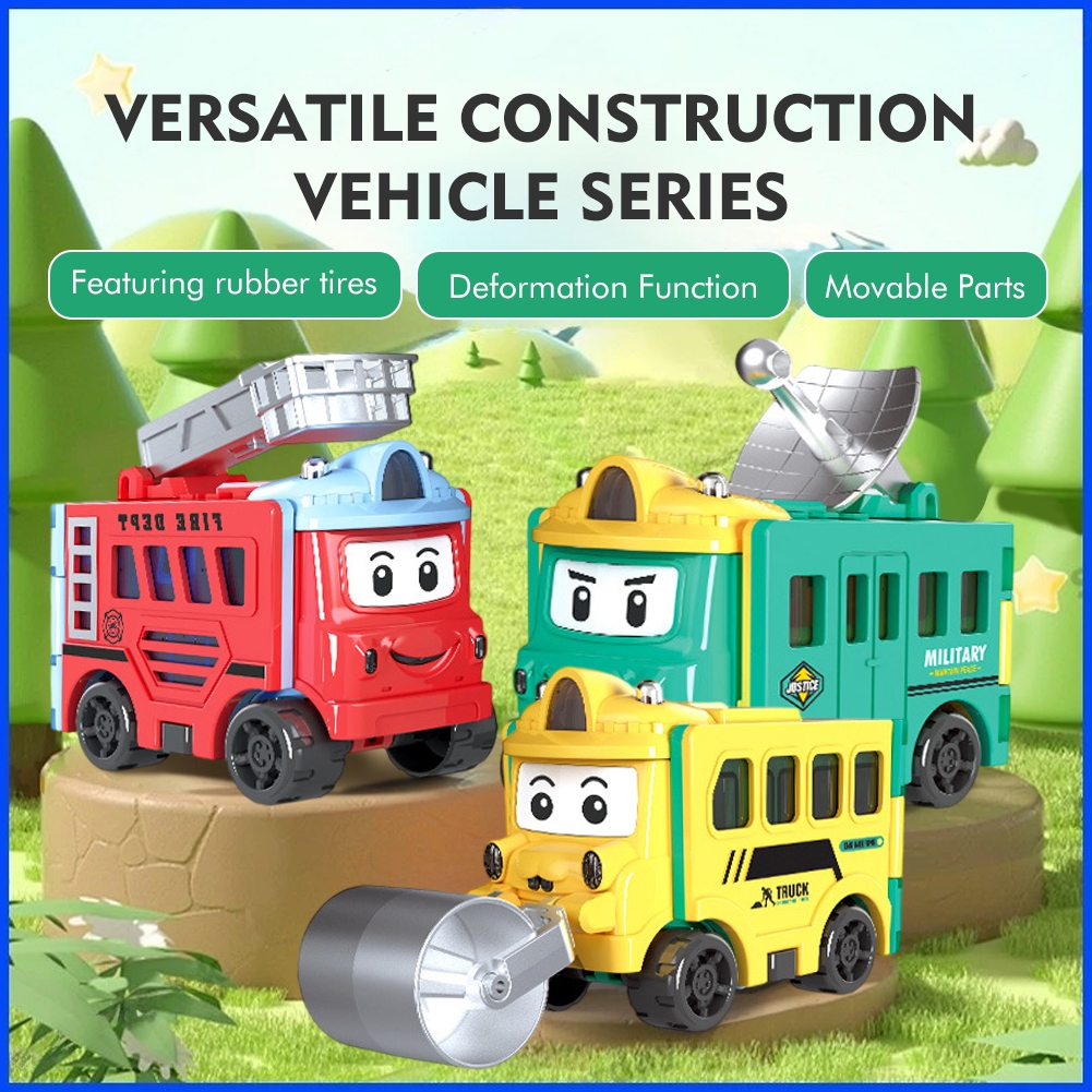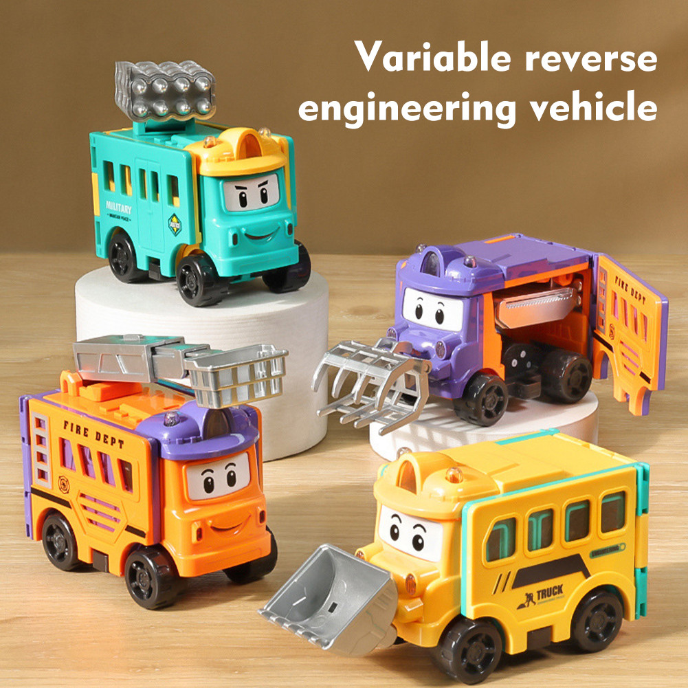 Children's Toys Distortion Transformation Inversion School Bus Toy Engineer Toy Cartoon Car Transformable