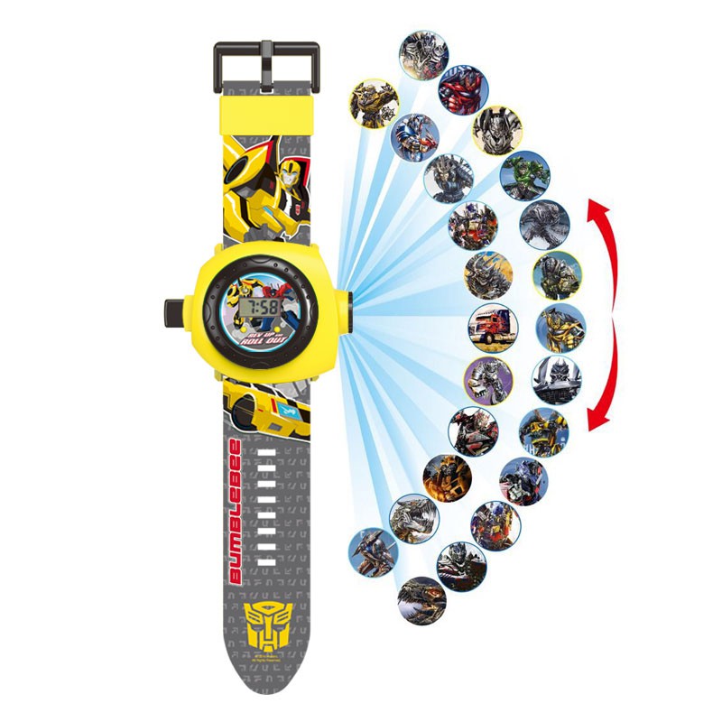 Children's cartoon transformed robot watch Teddy bear big electronic watch Transformers Optimus Prime projection watch