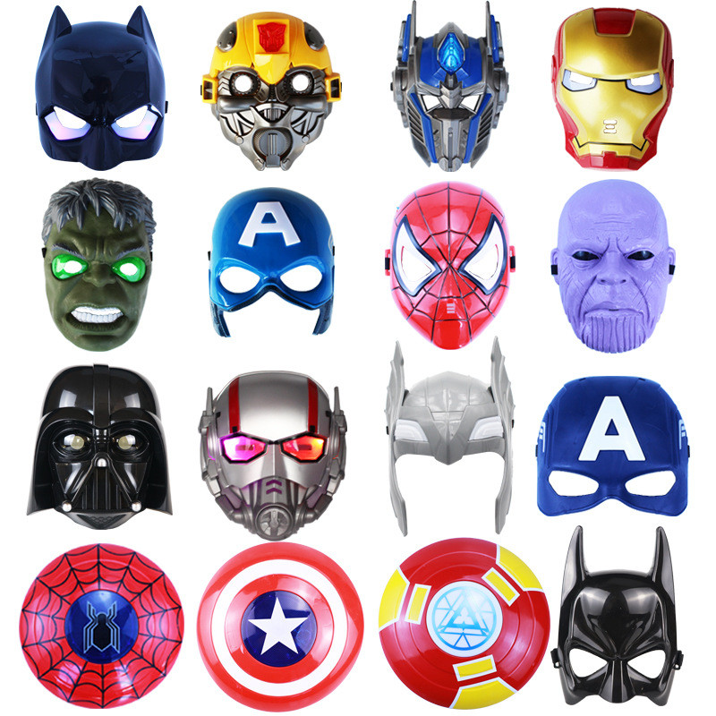 Children's glowing mask Spider Man Captain America Batman Iron Man Hulk Batman Shield Sound Lightsaber