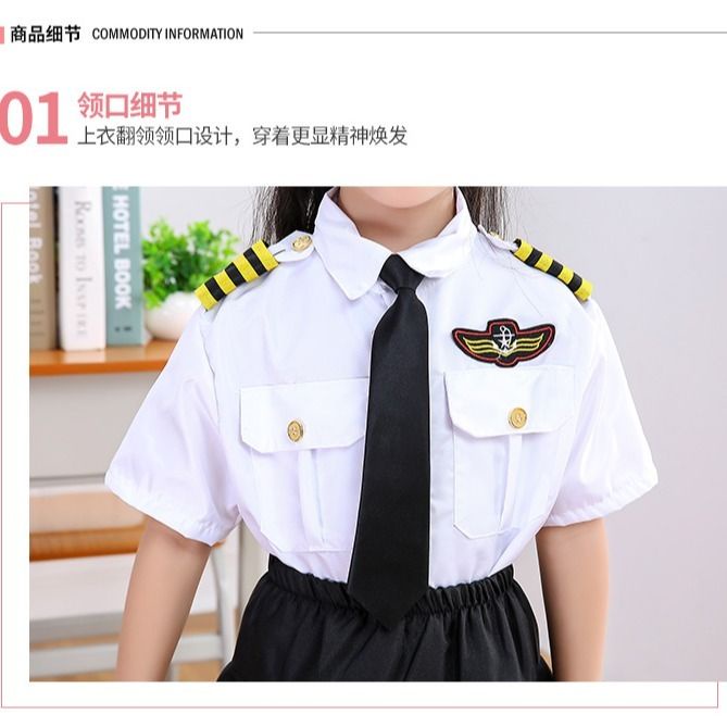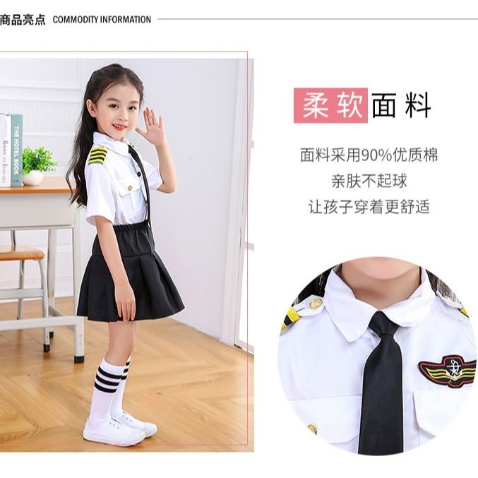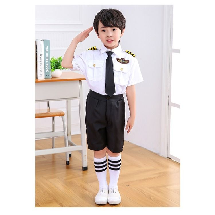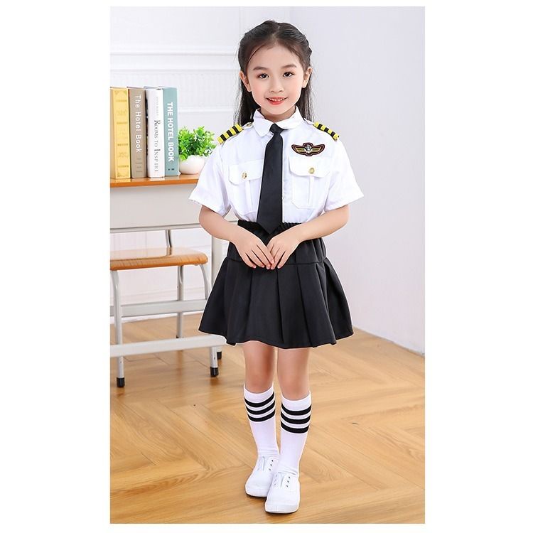Children's stewardess performance uniform air force short uniform aviation pilot performance uniform graduation photo costume pilot outfit