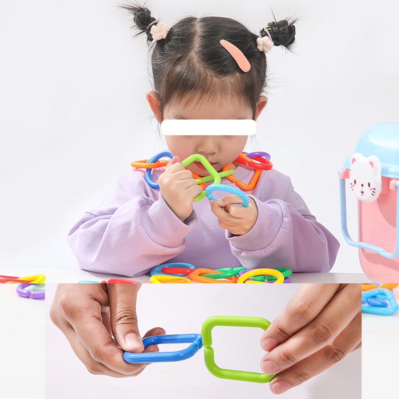 Children Colourful Geometry Linking Chain Plastic Hooks Kids Montessori Fine Motor Skills Toy Math Early Learning Toys