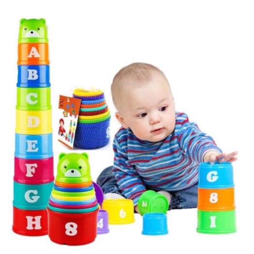 Children Educational Toys Baby Fun Stacking Cups Toy Fun Rainbow Cups Stacking Tower Mini Bear Toy