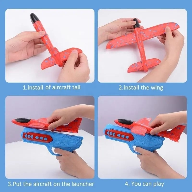 Children Foam Plane Launcher Toy 8-12M Range Airplane toy Gun Catapult Roundabout Toys Kids