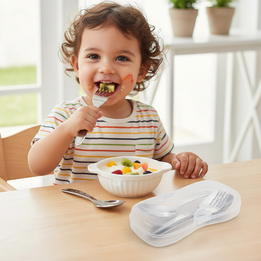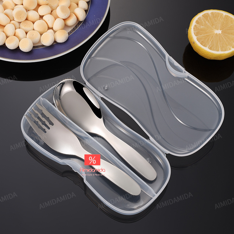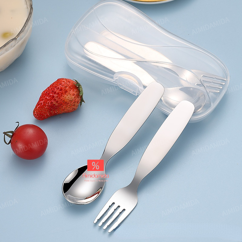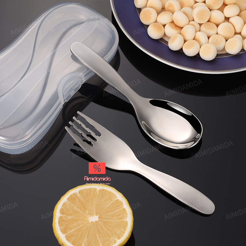 Children Fork Spoon Set with Travel Case Stainless Steel Untensil Kids Picnic Lunch Box AIM