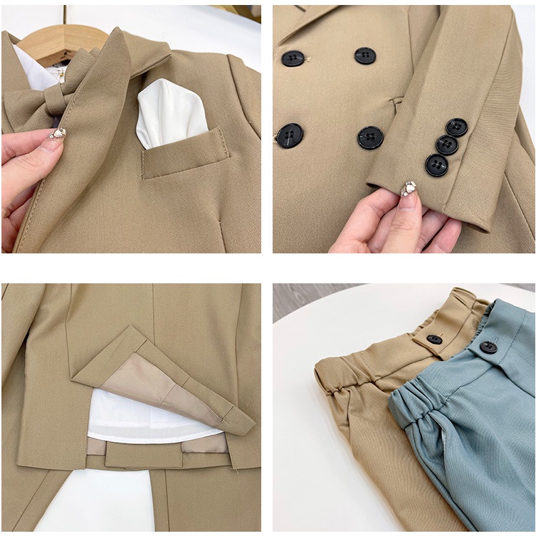 Children Formal Clothing Kids Boys Solid Color Tuxedo Attire Suits Gentleman Blazer Pants Shirt Kid Dresswear Suit Birthday Party School Gown 2-9 Years