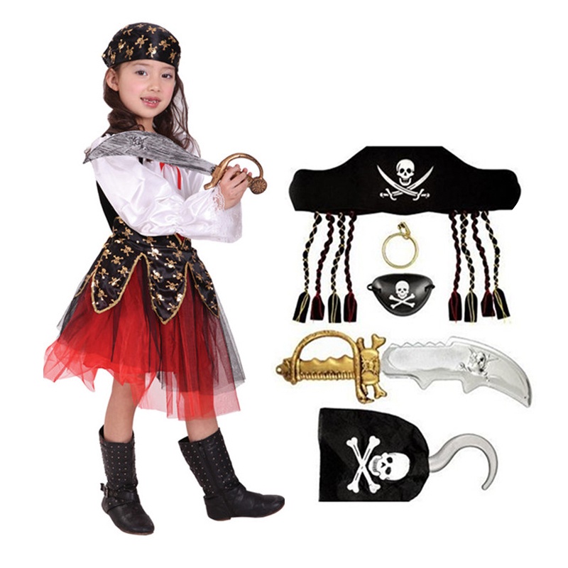 Children Girls Pirate Costume for Kids Cosplay Christmas New Year Halloween Birthday Pirate Dress