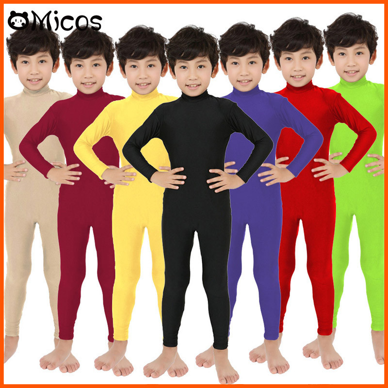 Children Spandex Nylon Long Sleeve High Collar One-piece Suits Dance Leotard Gymnastics Unitard Biketard Dancewear for Teens Kid