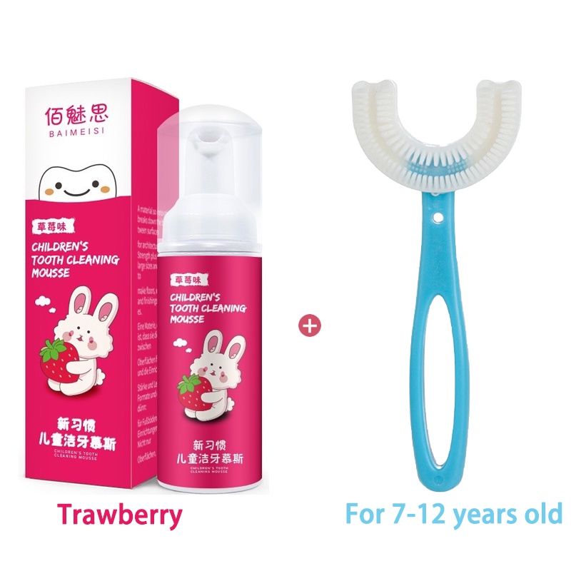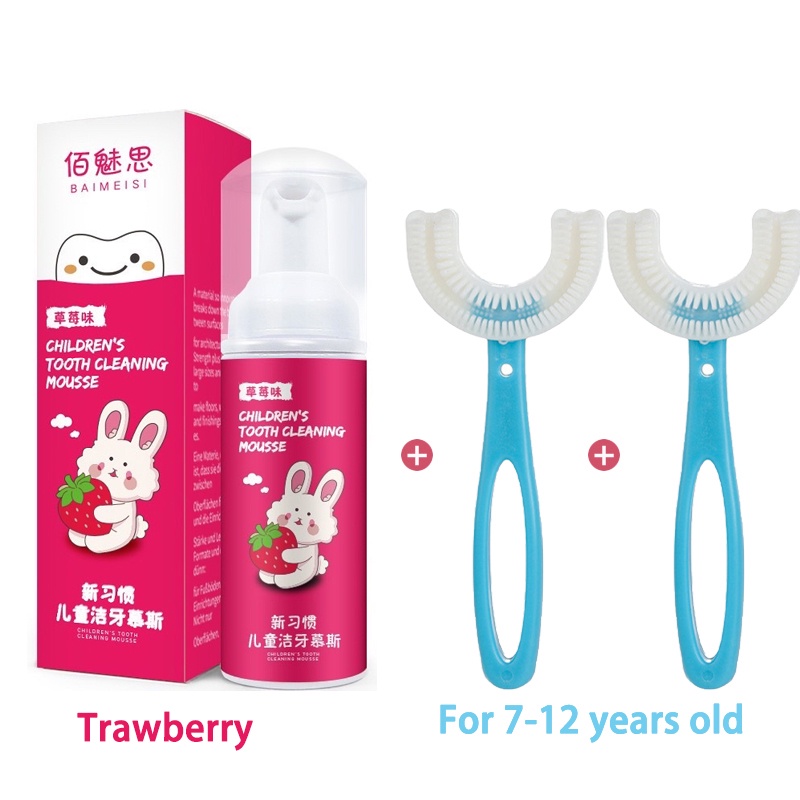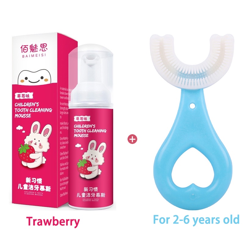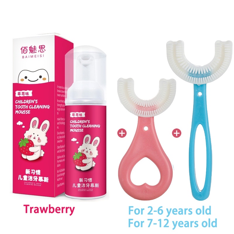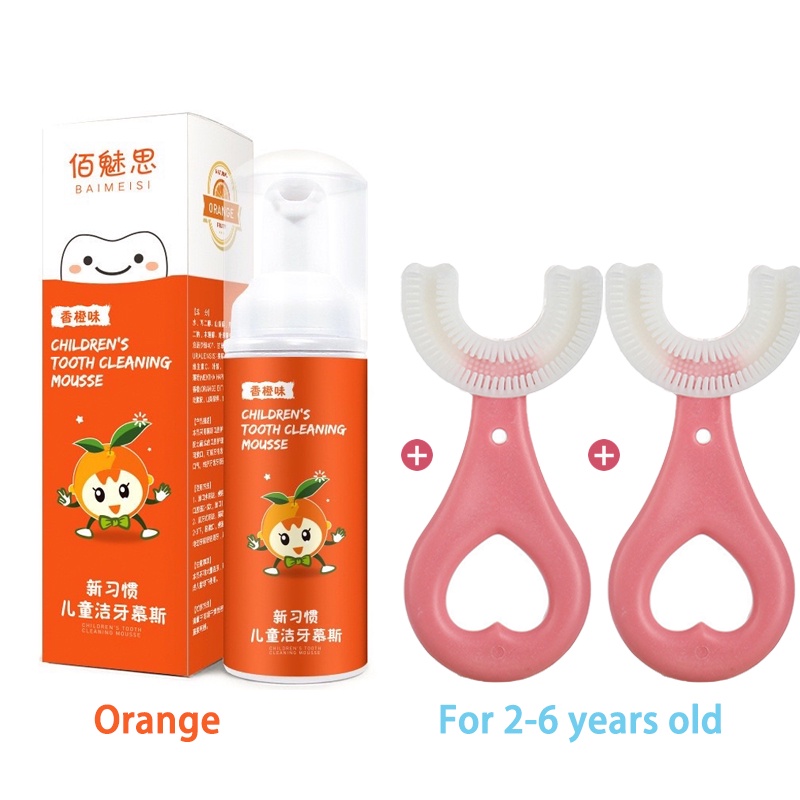 Children toothbrush U shape toothbrush for kids toddler baby 2-12 years old with mousse toothpaste