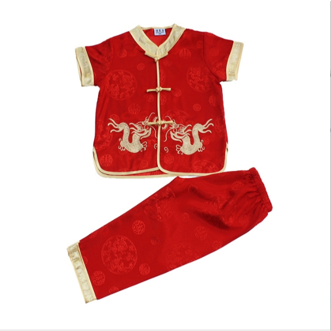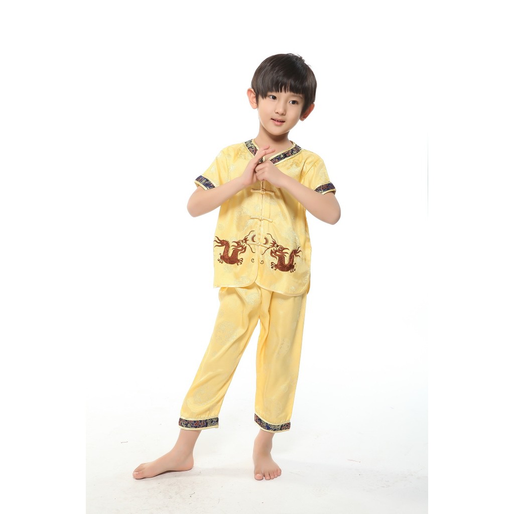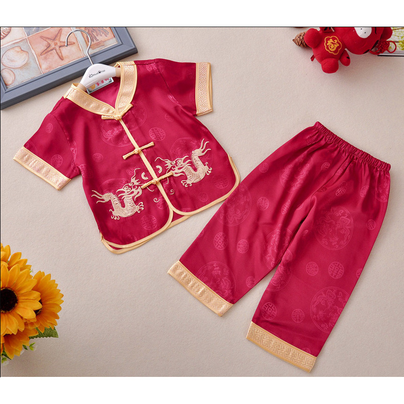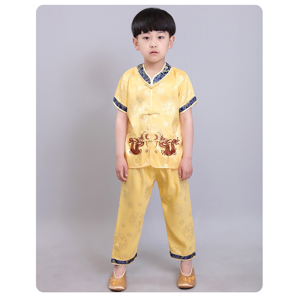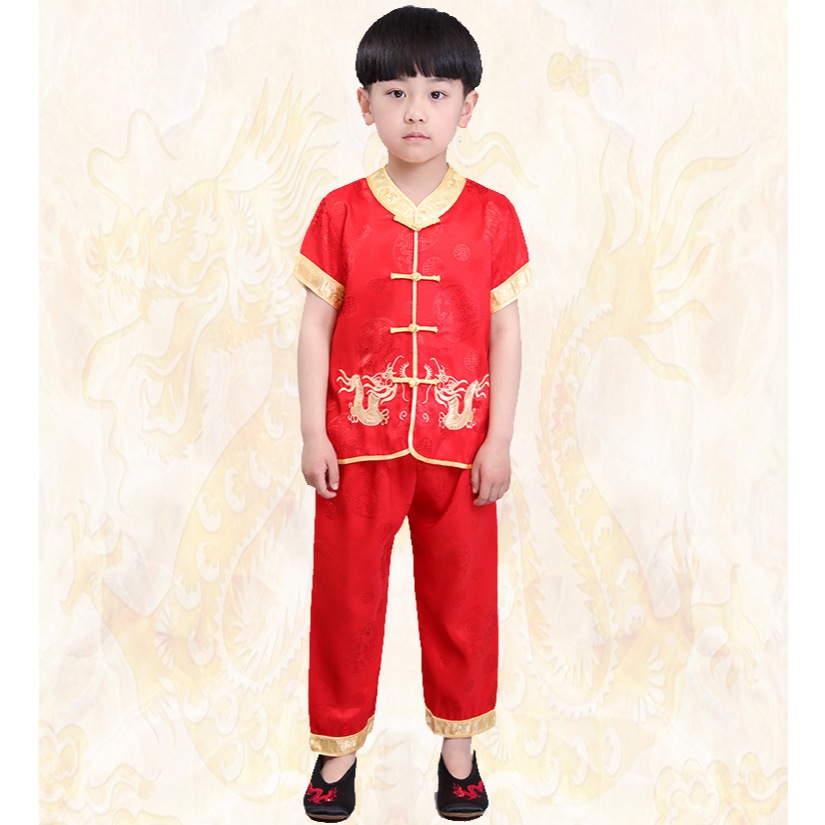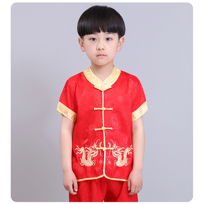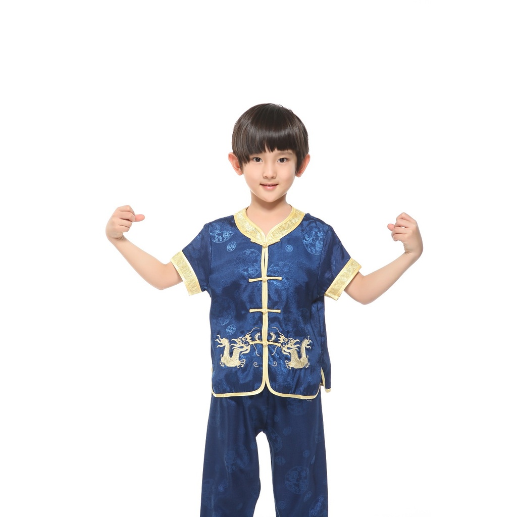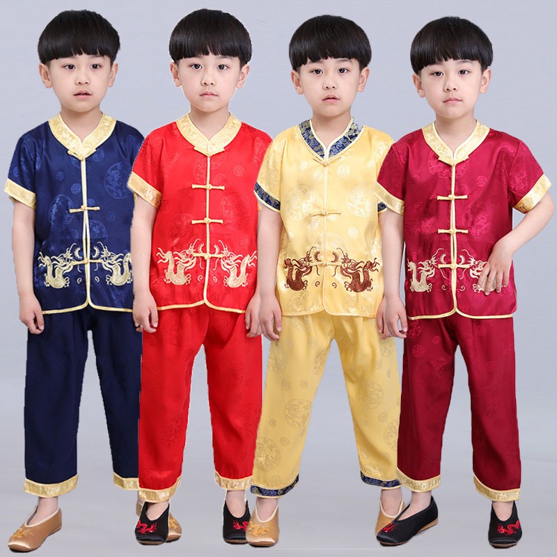 China Costume for Kids Boy Dragon Print Tops Pants Traditional Tang Suit Asian United Nation Costume for Boys CNY