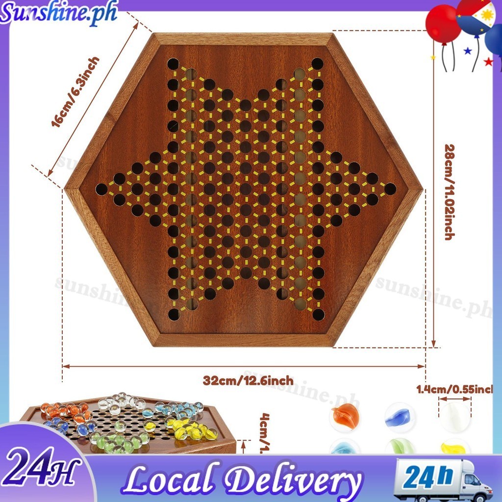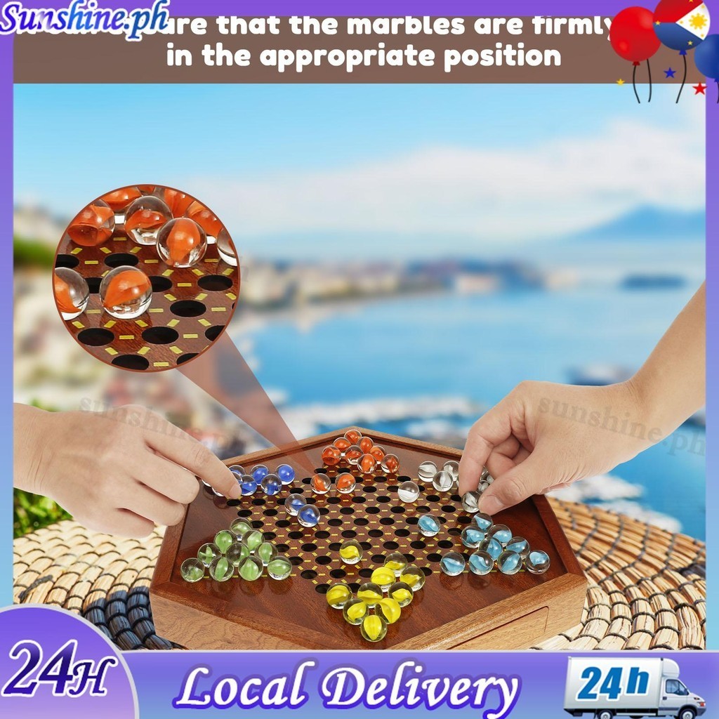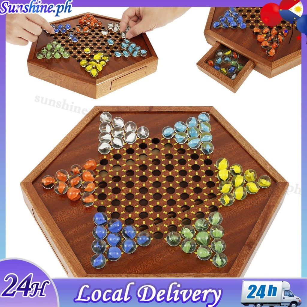 Chinese Checkers Wooden Chinese Checkers Game with Drawers and 72 Colorful Glass Balls Fun Wooden Board Game for Kids Adults Family SHOPQJC8853
