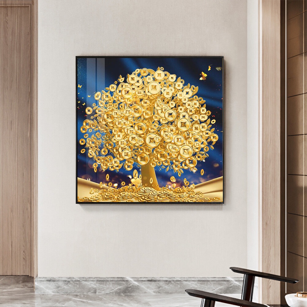 Chinese Lucky Tree Poster Prints Golden Money Tree Canvas Painting House Wall Decoration Picture