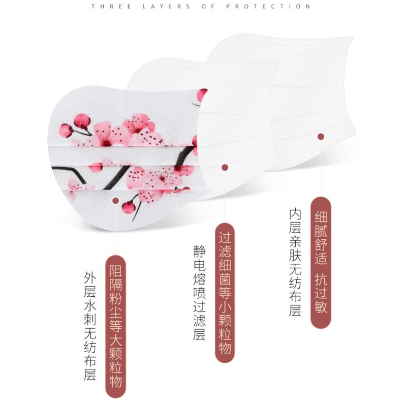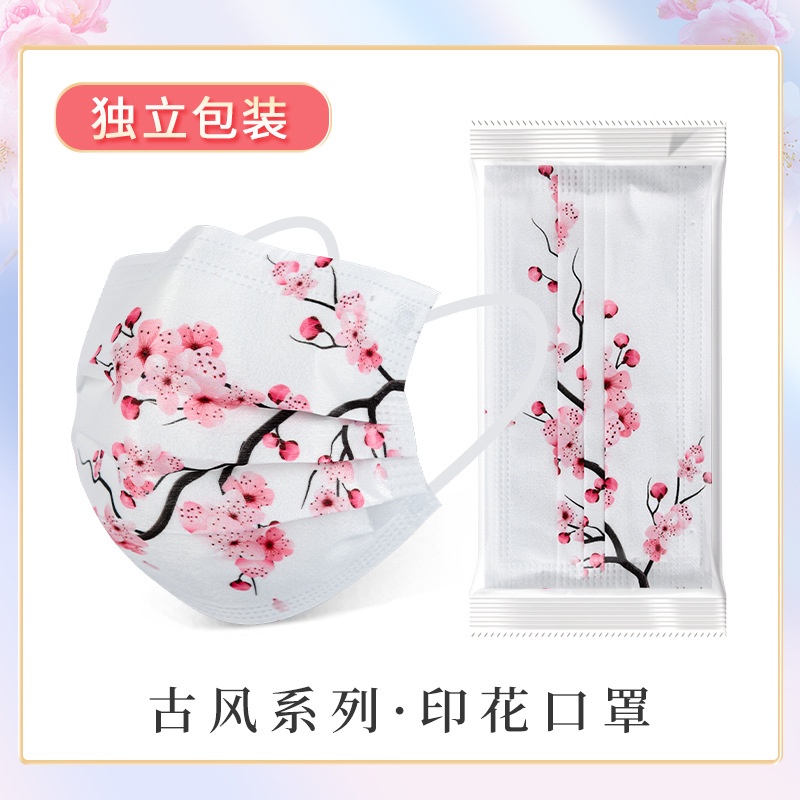 Chinese Style Creative Mask Blossoming series Three-layer melt blown protection Breathable Cute Disposable Masks
