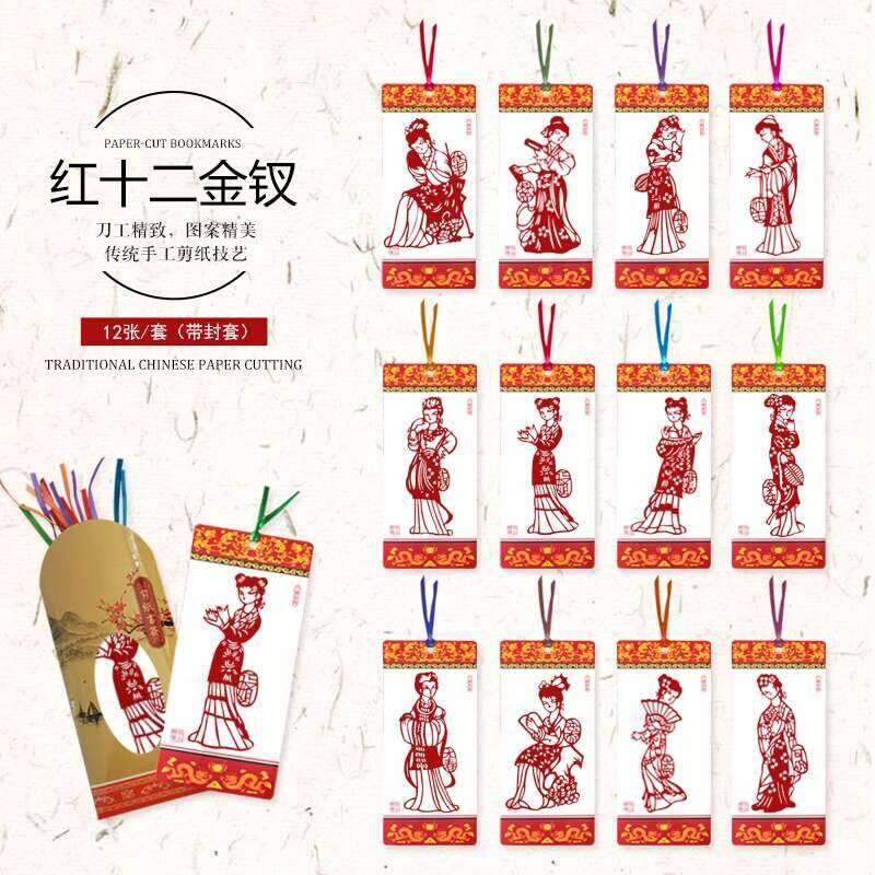 Chinese Style Paper-Cutting Bookmarks Chinese-English Study Abroad Gift for Classmates Graduati