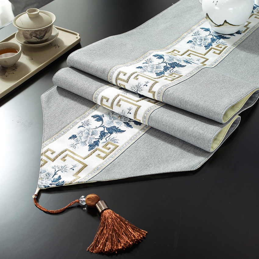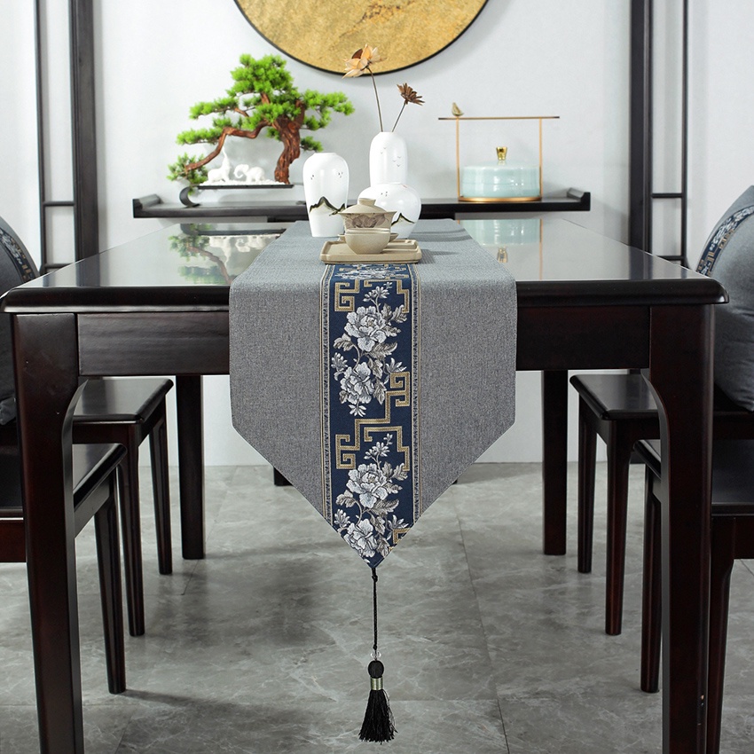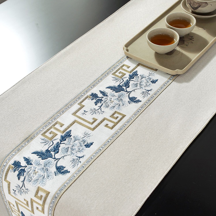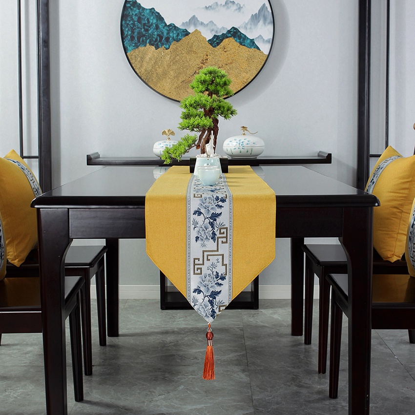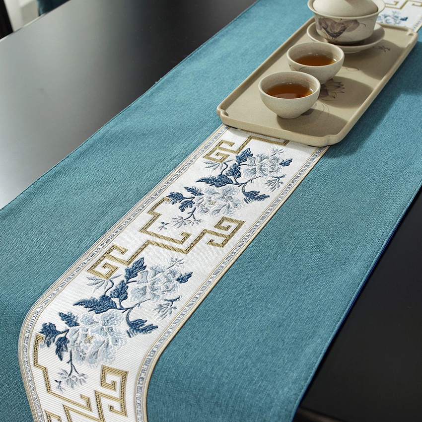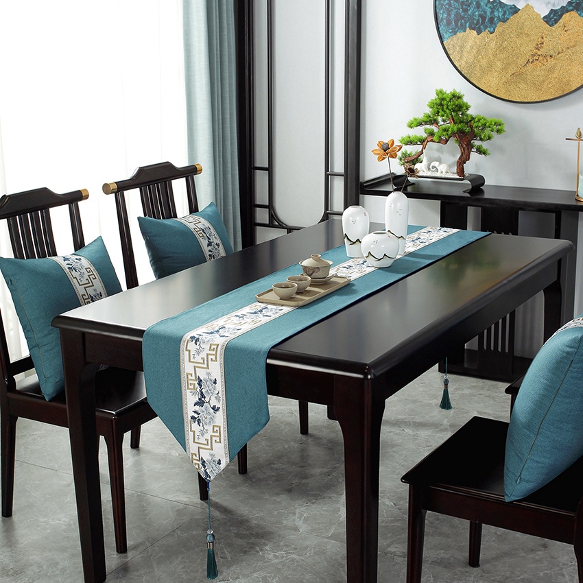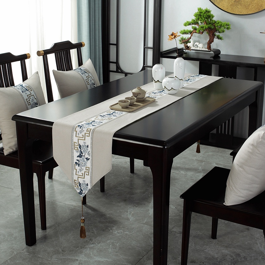 Chinese Table Runner Cloth Cotton Linen Alas Meja 4 6 8 Kerusi for Dining Table Coffee Table Raya Decor