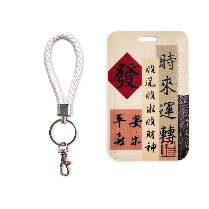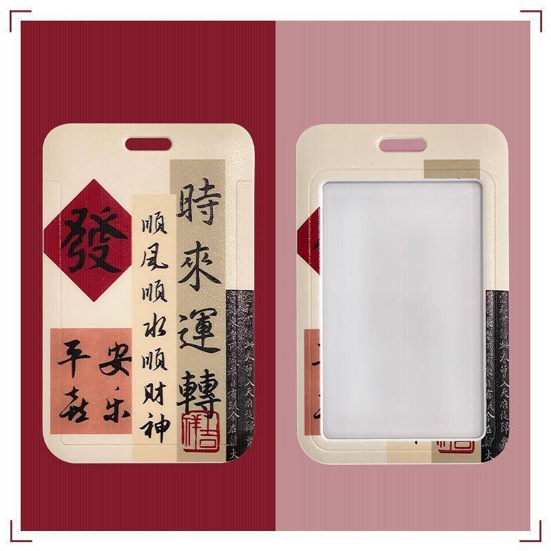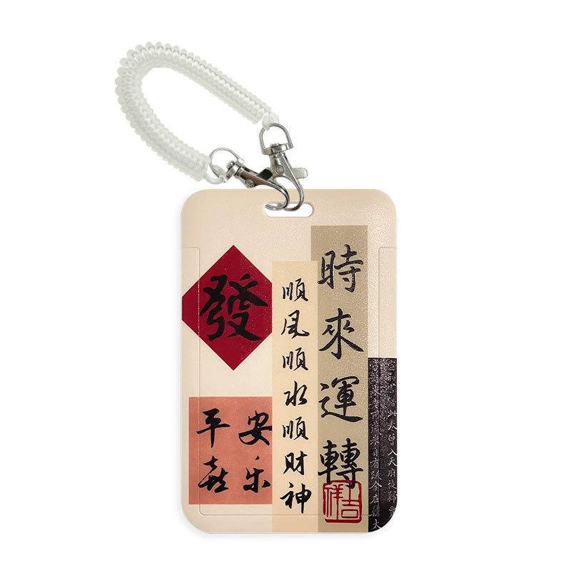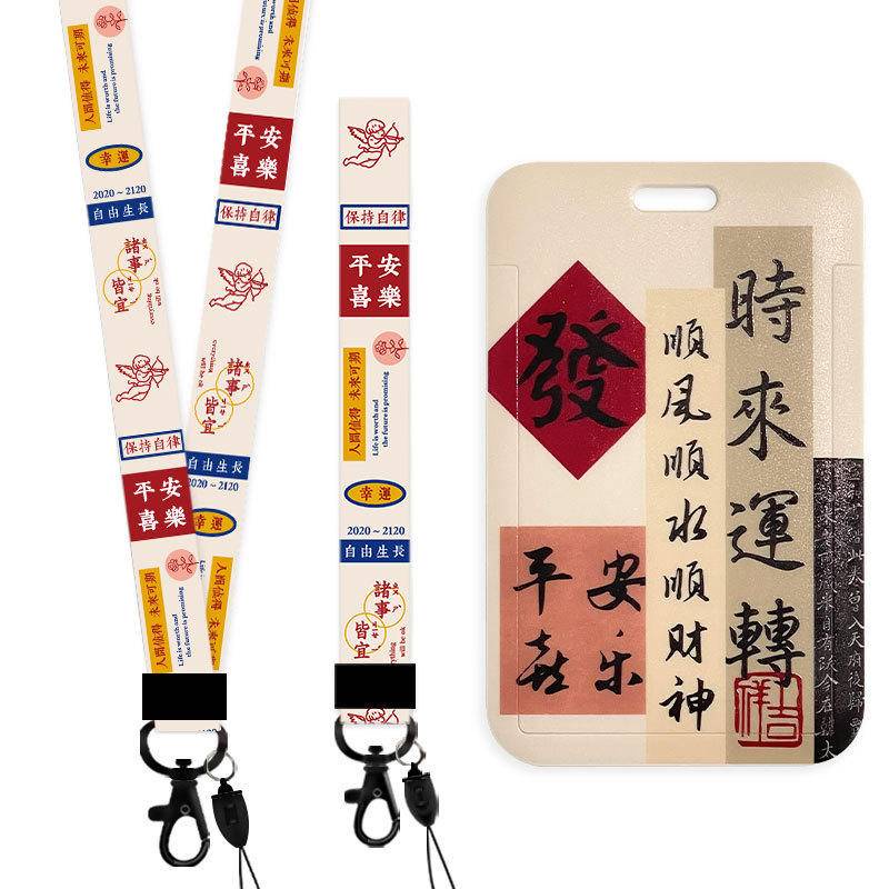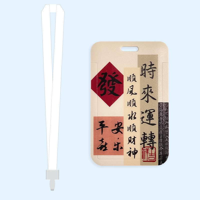 Chinese calligraphy student ID card cover with lanyard bus subway card Holder campus canteen card employee badge card protective case