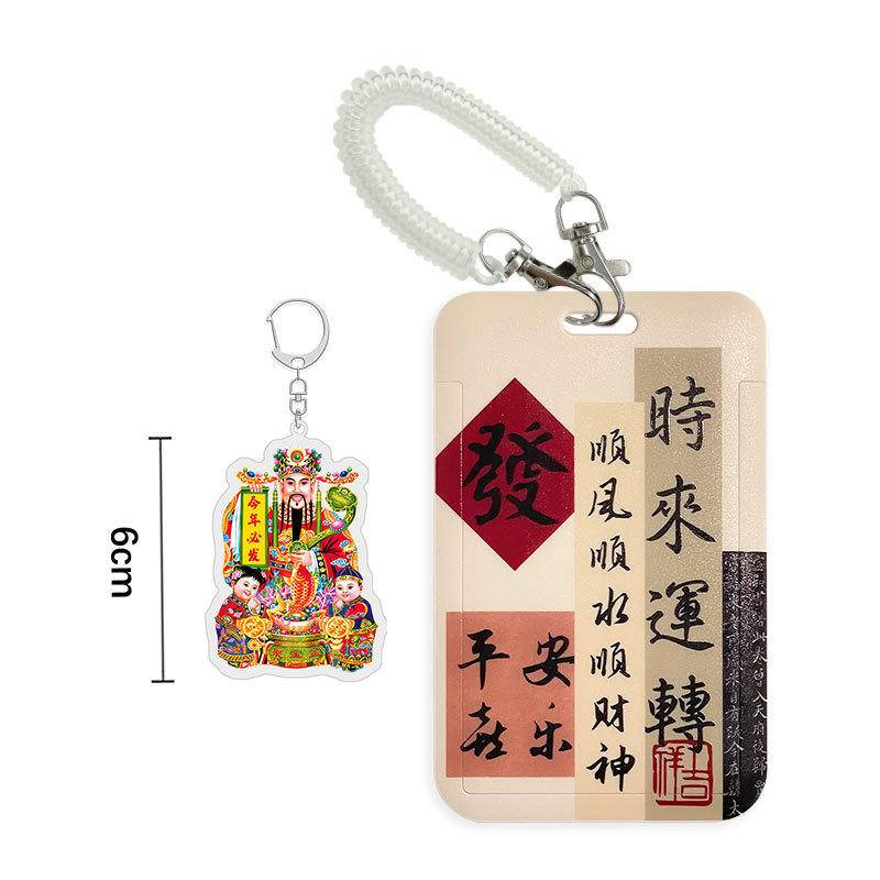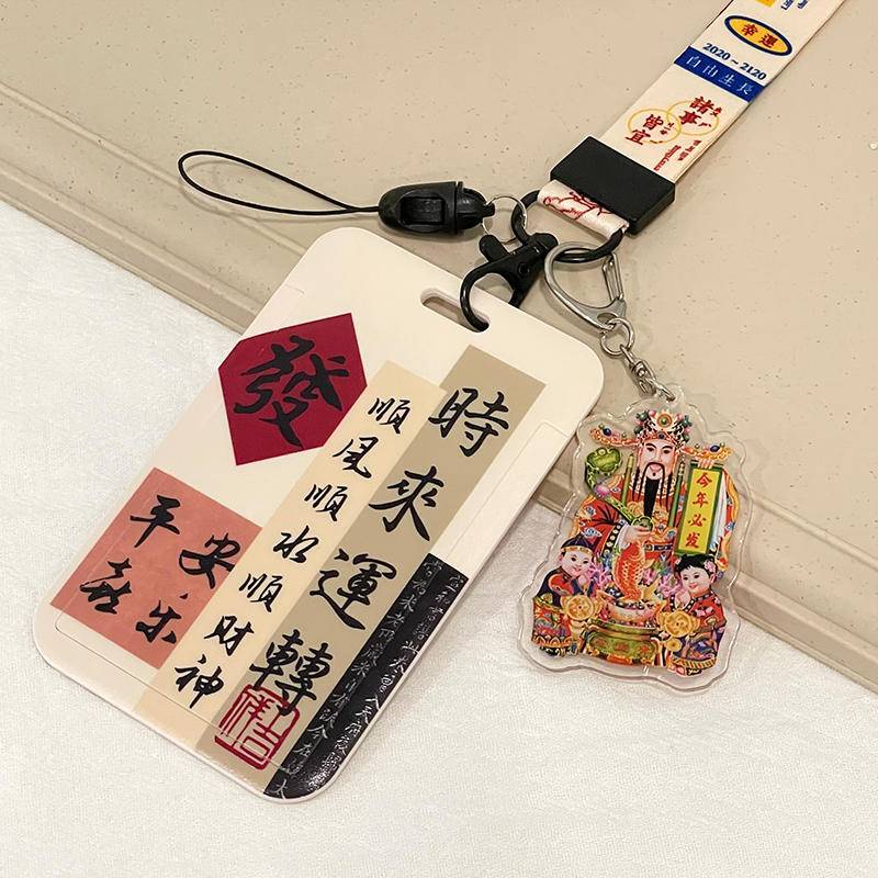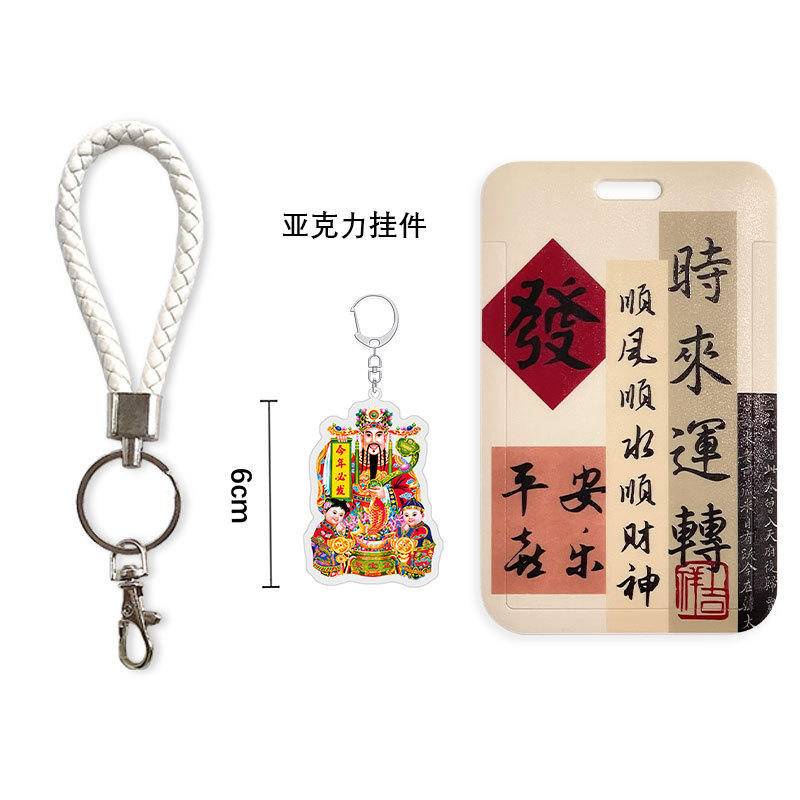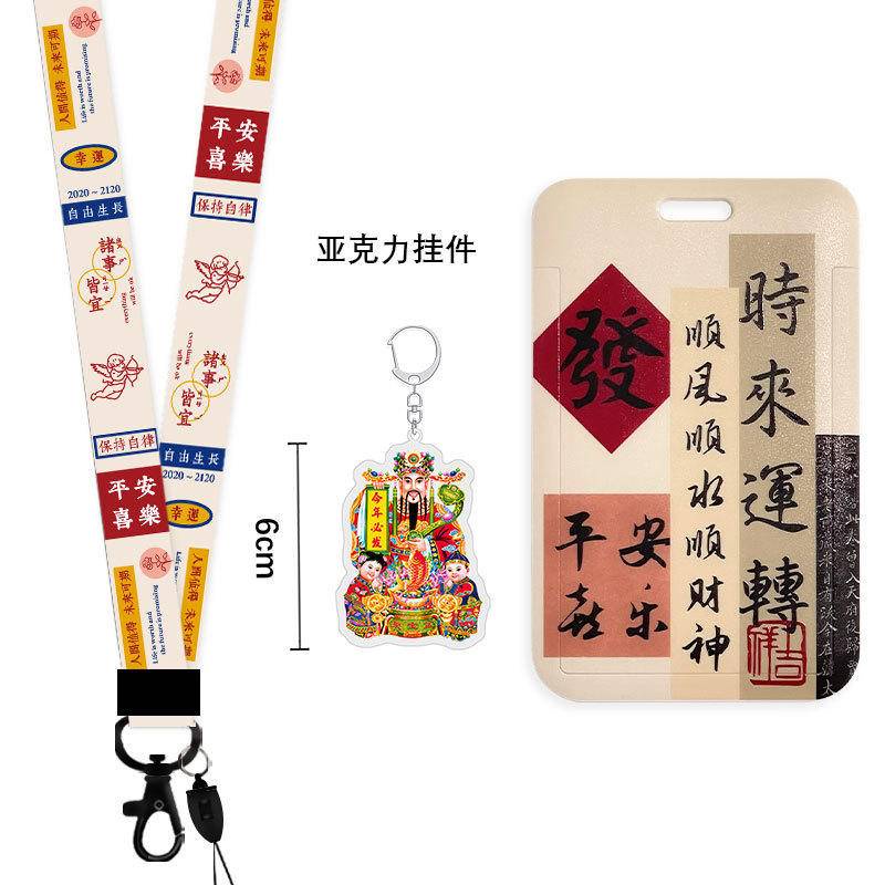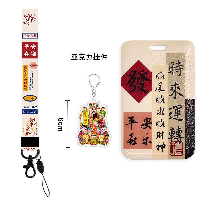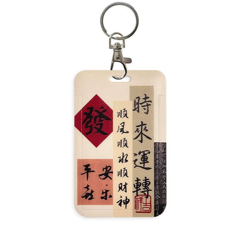 Chinese calligraphy student ID card cover with lanyard bus subway card Holder campus canteen card employee badge card protective case
