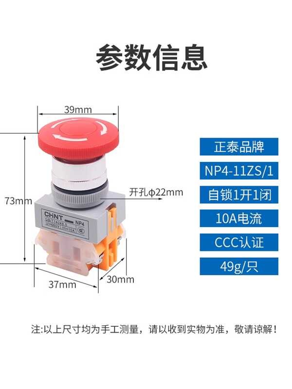 Chint emergency stop switch NP4-11ZS/1 red mushroom head self-locking rotation reset butto